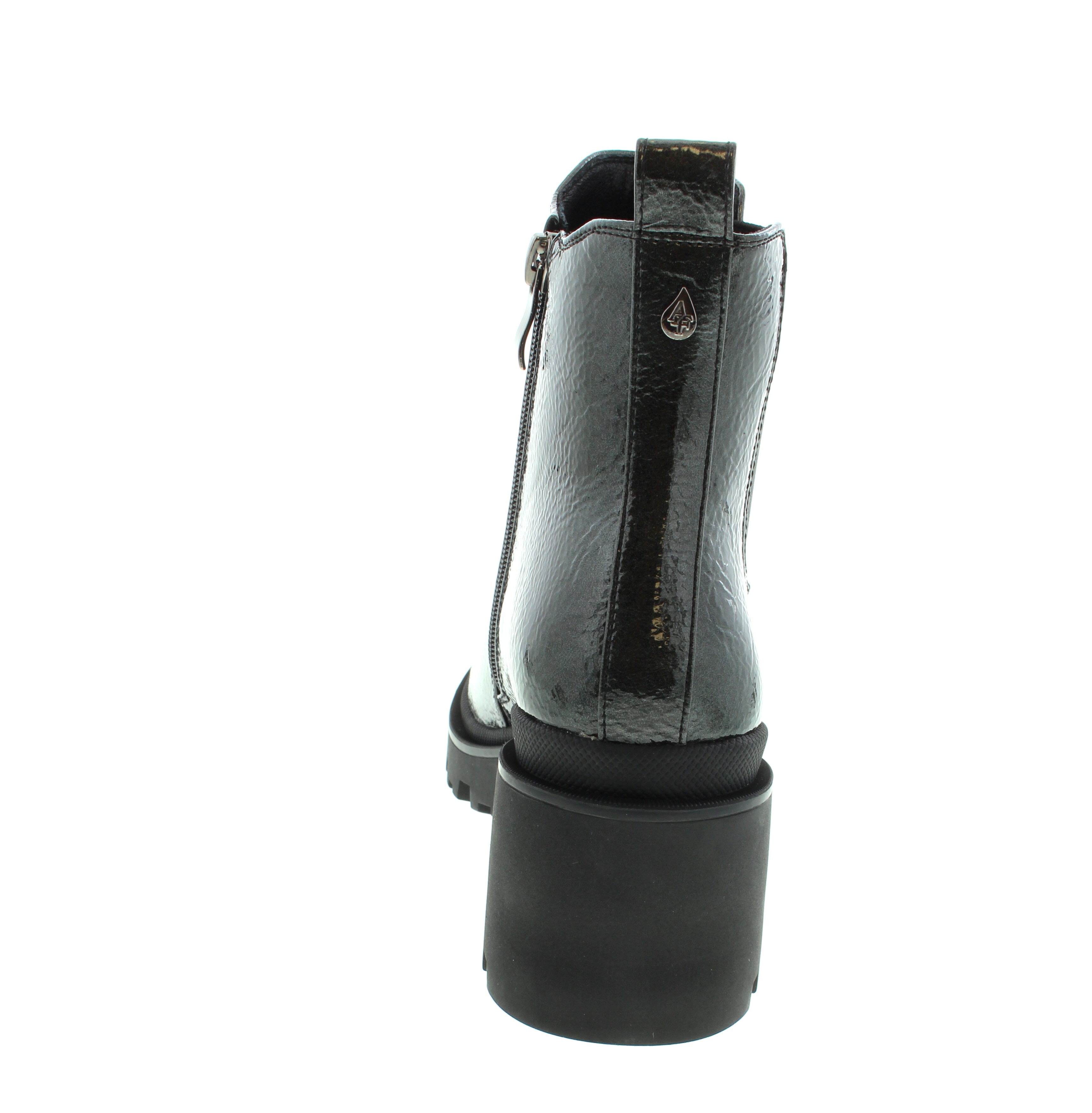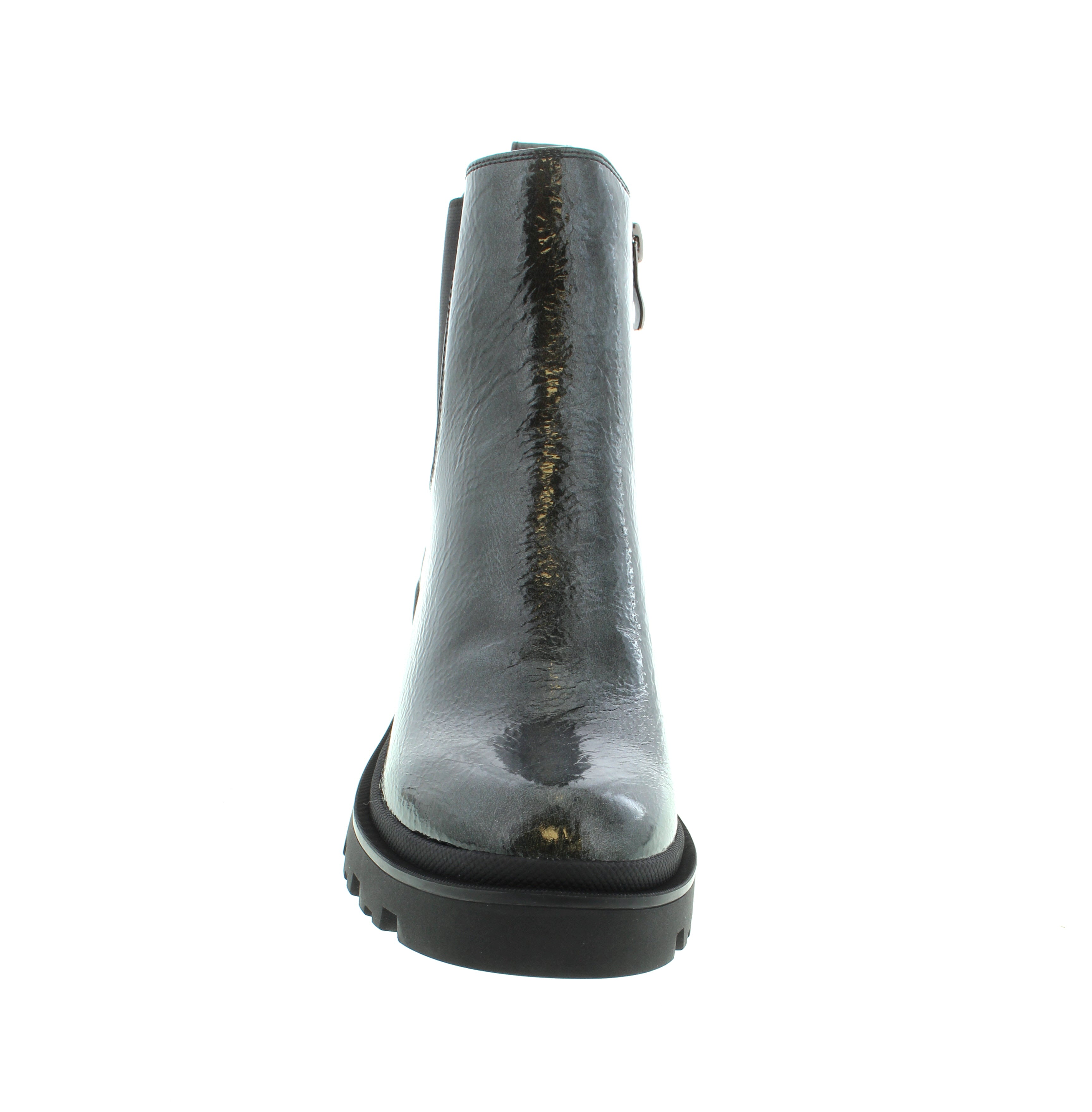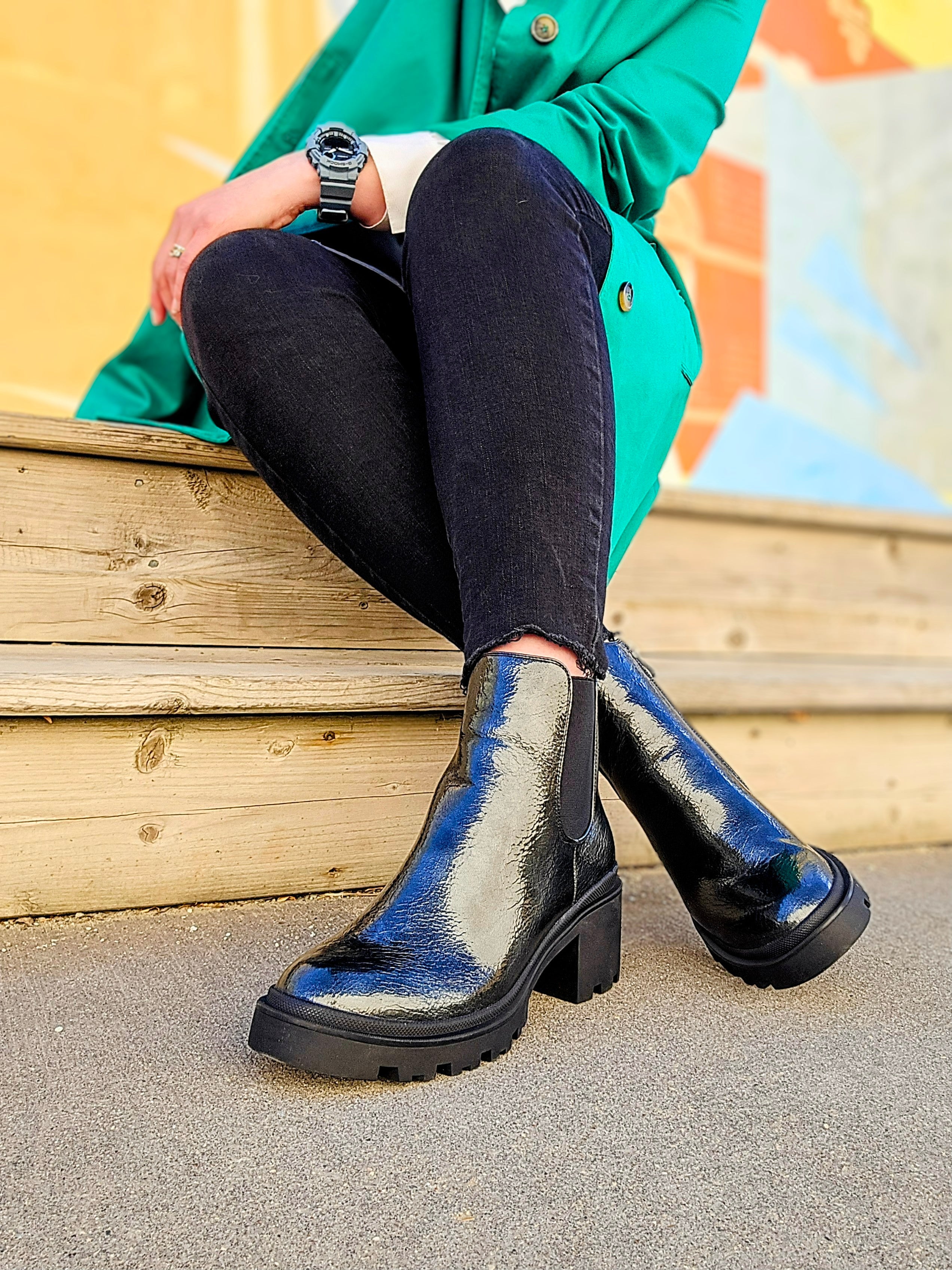 The Aqua Flex Slick One boots in black seamlessly blend style and comfort. Featuring a sleek patent leather upper, these boots add a polished and contemporary touch to any outfit. The side zipper and elastic gore panel provide effortless slip-on convenience, making them easy to wear throughout your busy day. Inside, a cushioned interior ensures lasting comfort, supporting your feet whether you're on the move or standing for long periods. These boots are a versatile choice for those who want to look sharp without compromising on comfort.