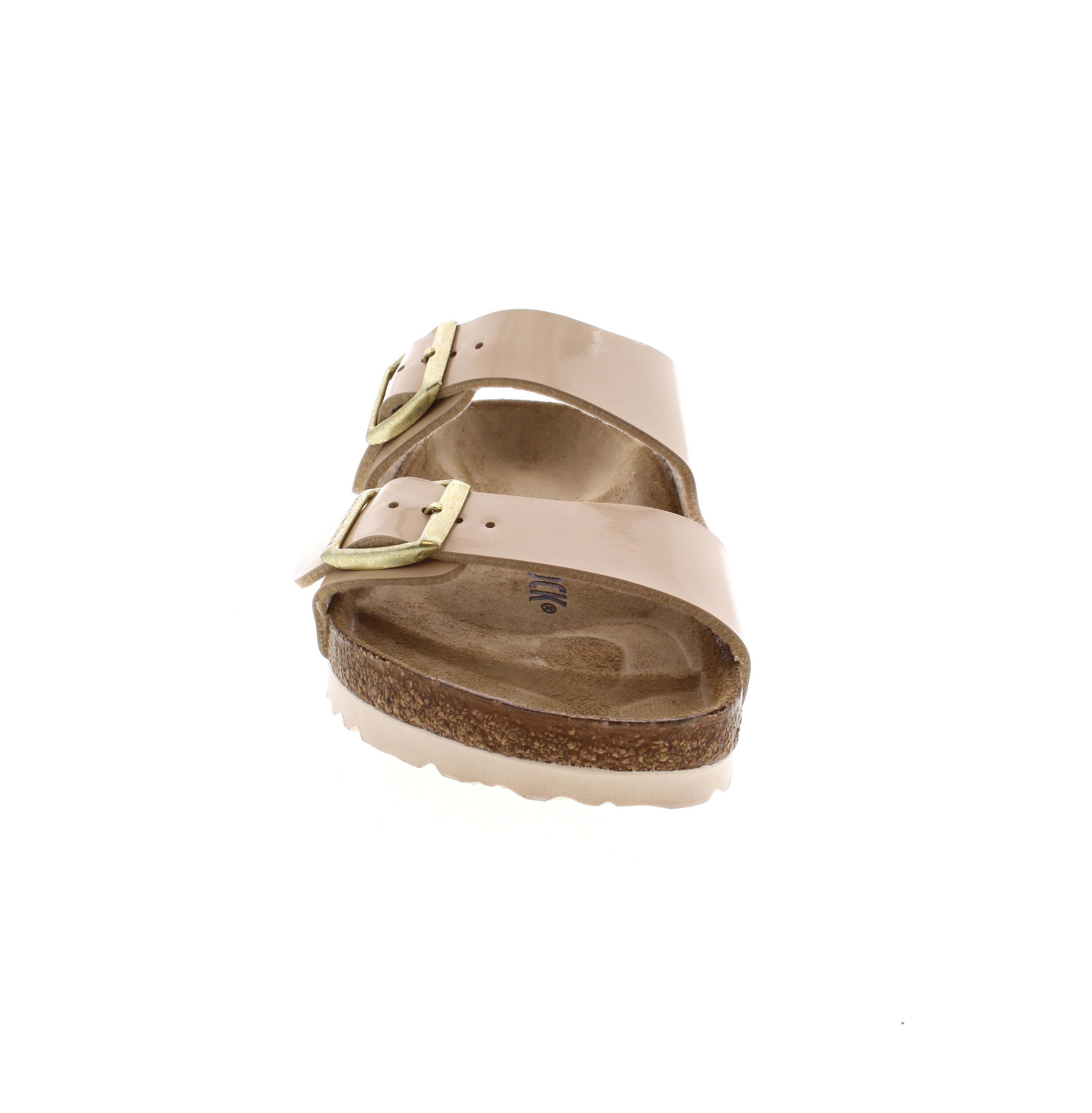 Upgrade your style game with the Birkenstock Arizona patent sandal. This fashionable slide sandal is designed with a contoured cork-latex footbed for all-day support and comfort.