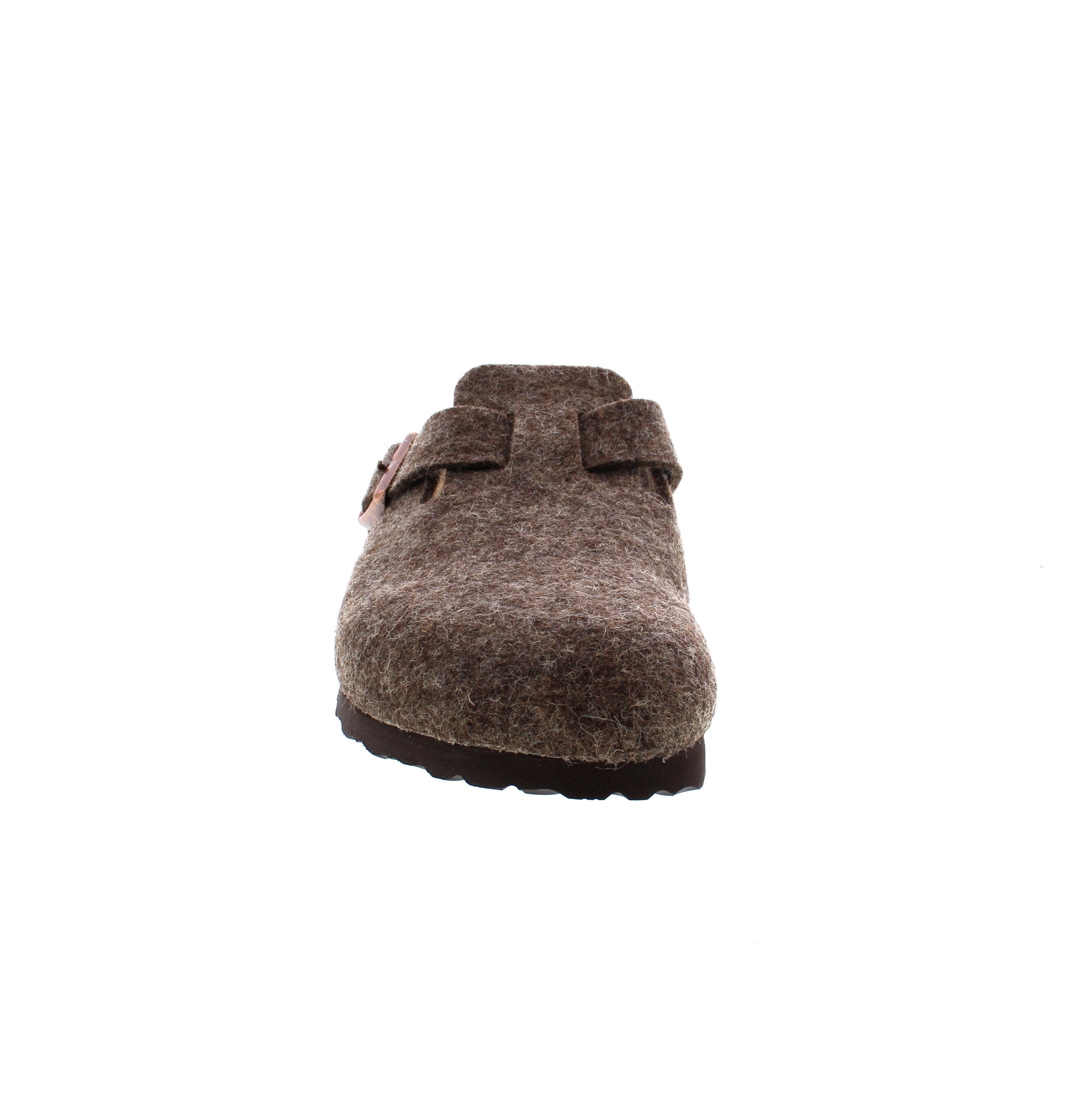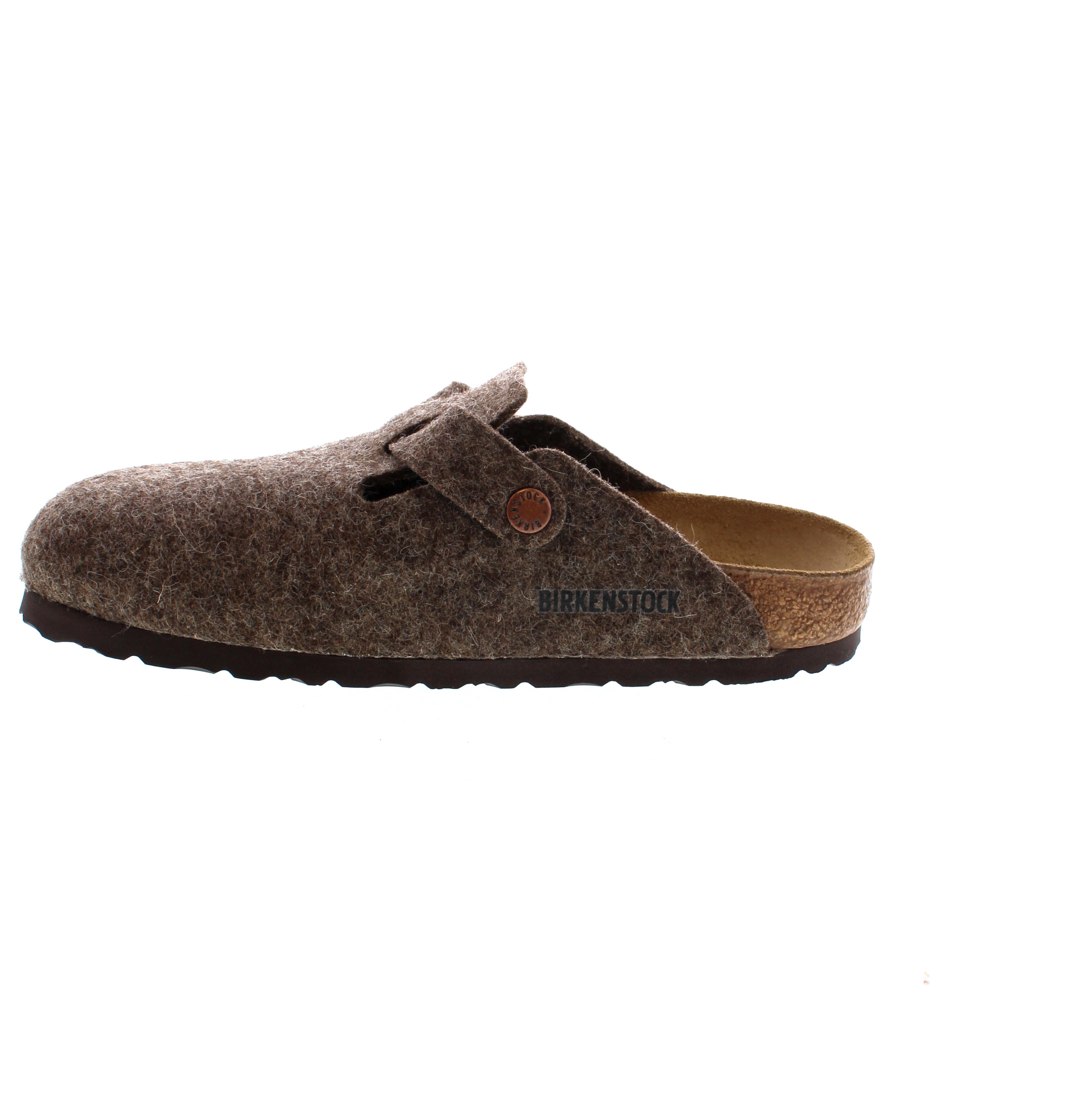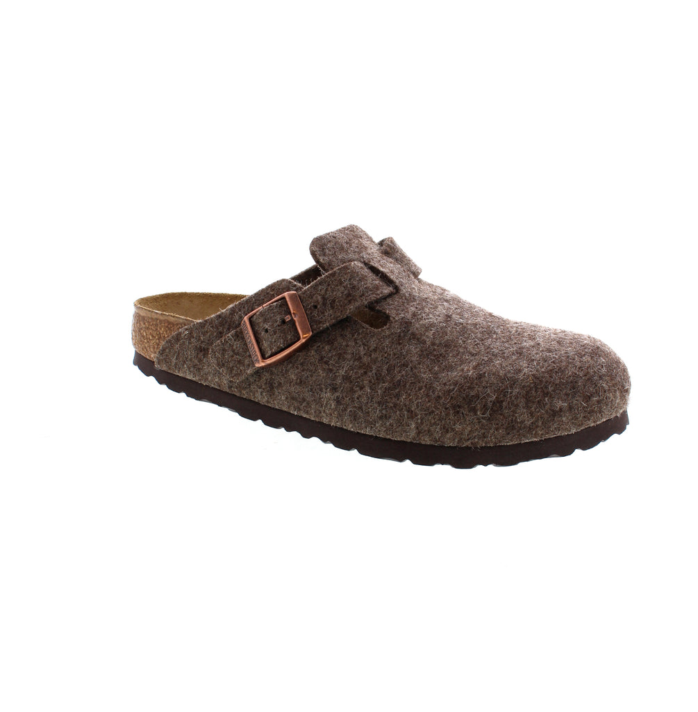The signature slip-on clog from Birkenstock. The Boston is crafted from wool with an anatomically contoured 100% sustainable cork footbed. This classic and comfortable design has an adjustable strap across the vamp with buckle closure.