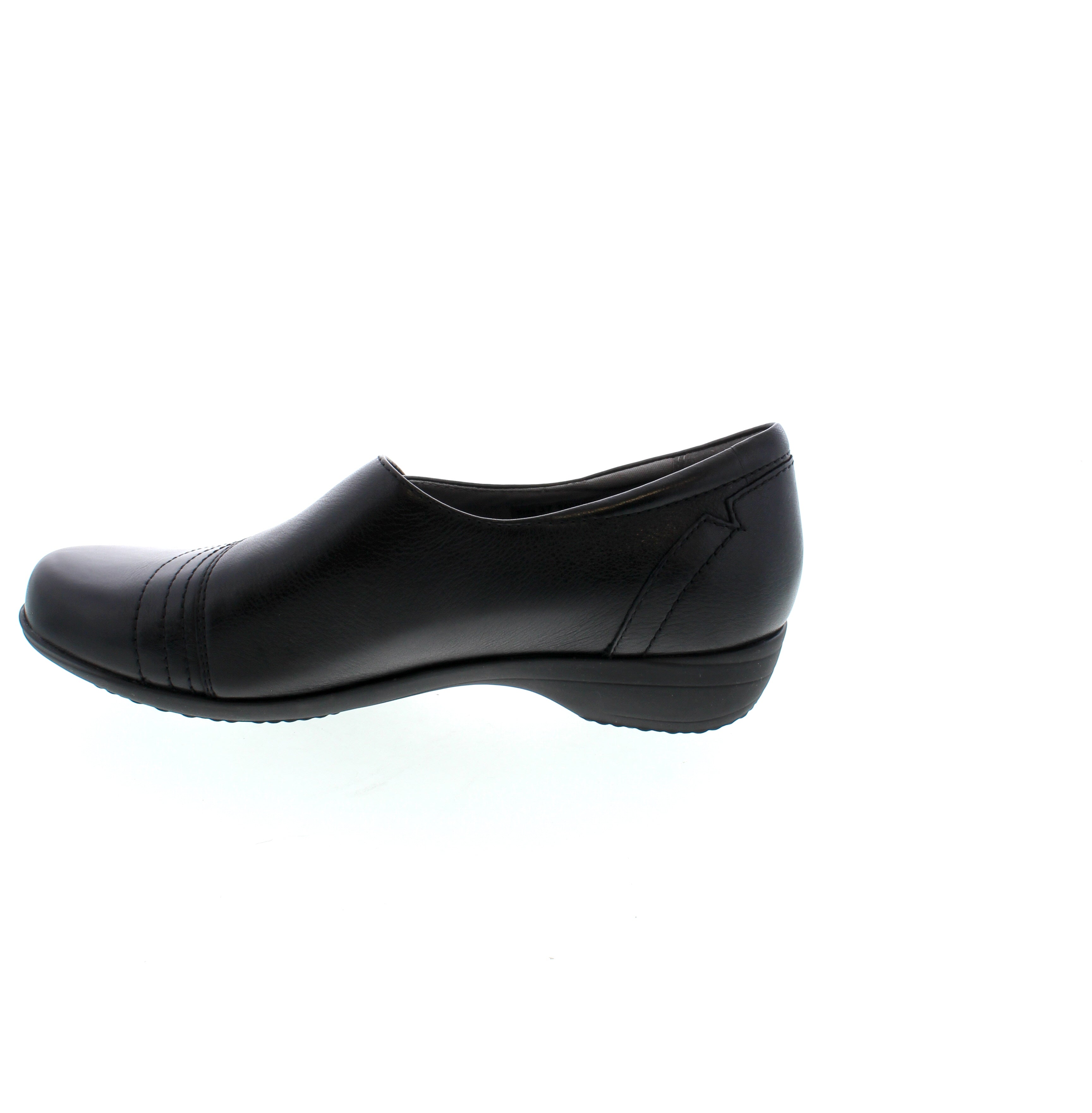 The Dansko Franny in black features a classy A-Line design with a bold wide strap for added style and confidence in your work wardrobe. With Dansko Natural Arch® technology, this shoe also provides contoured arch support to keep you comfortable and on your feet all day long.