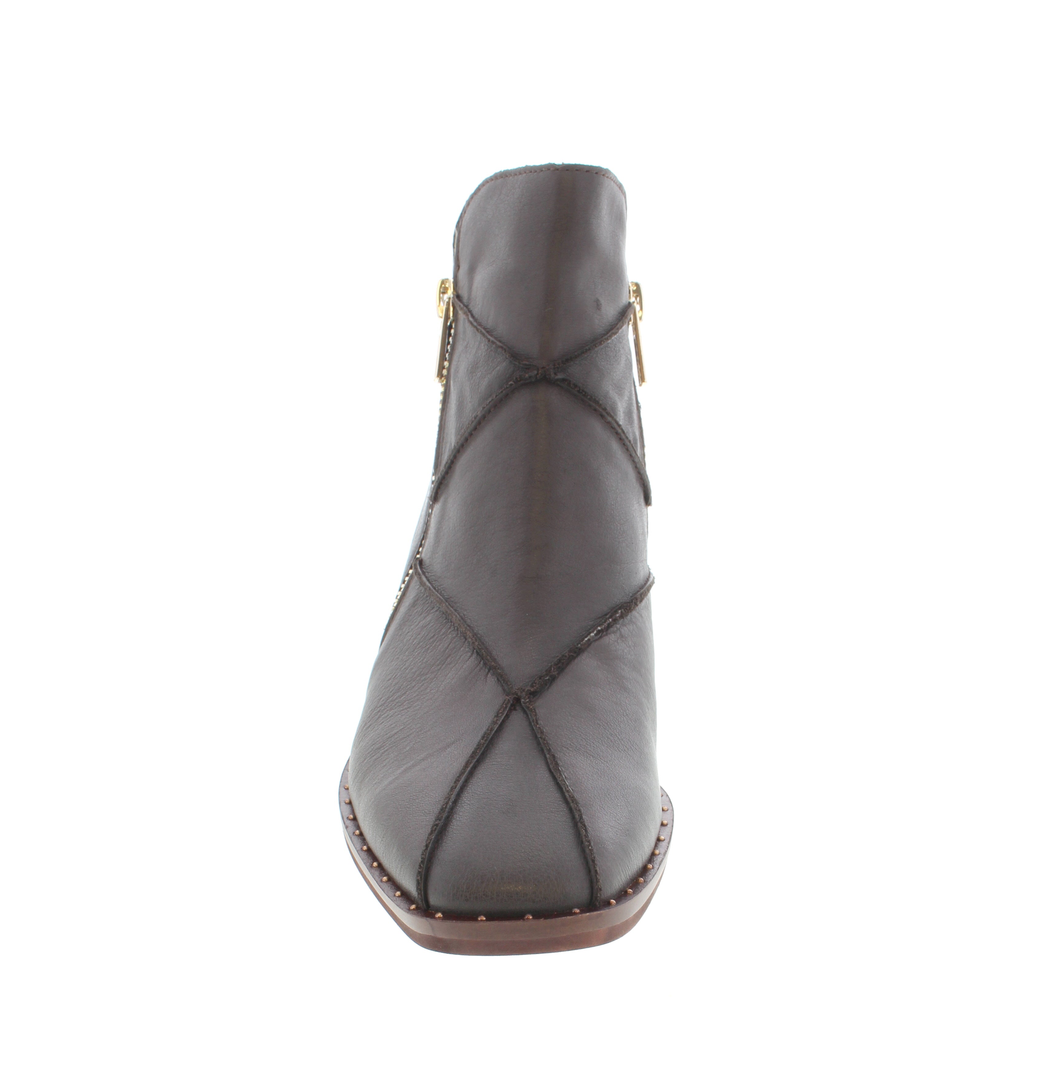 Elevate your wardrobe with the Django & Juliette Foshan ankle boots in rich chocolate leather. These boots boast a sleek, contemporary design that effortlessly enhances both casual and dressy looks. Crafted with quality leather, they provide durability and comfort for daily wear. The modern silhouette and subtle detailing make Foshan a versatile choice that pairs well with jeans, skirts, or tailored pants. Step out in confidence and add a refined touch to your everyday outfits with these stylish and practical ankle boots.