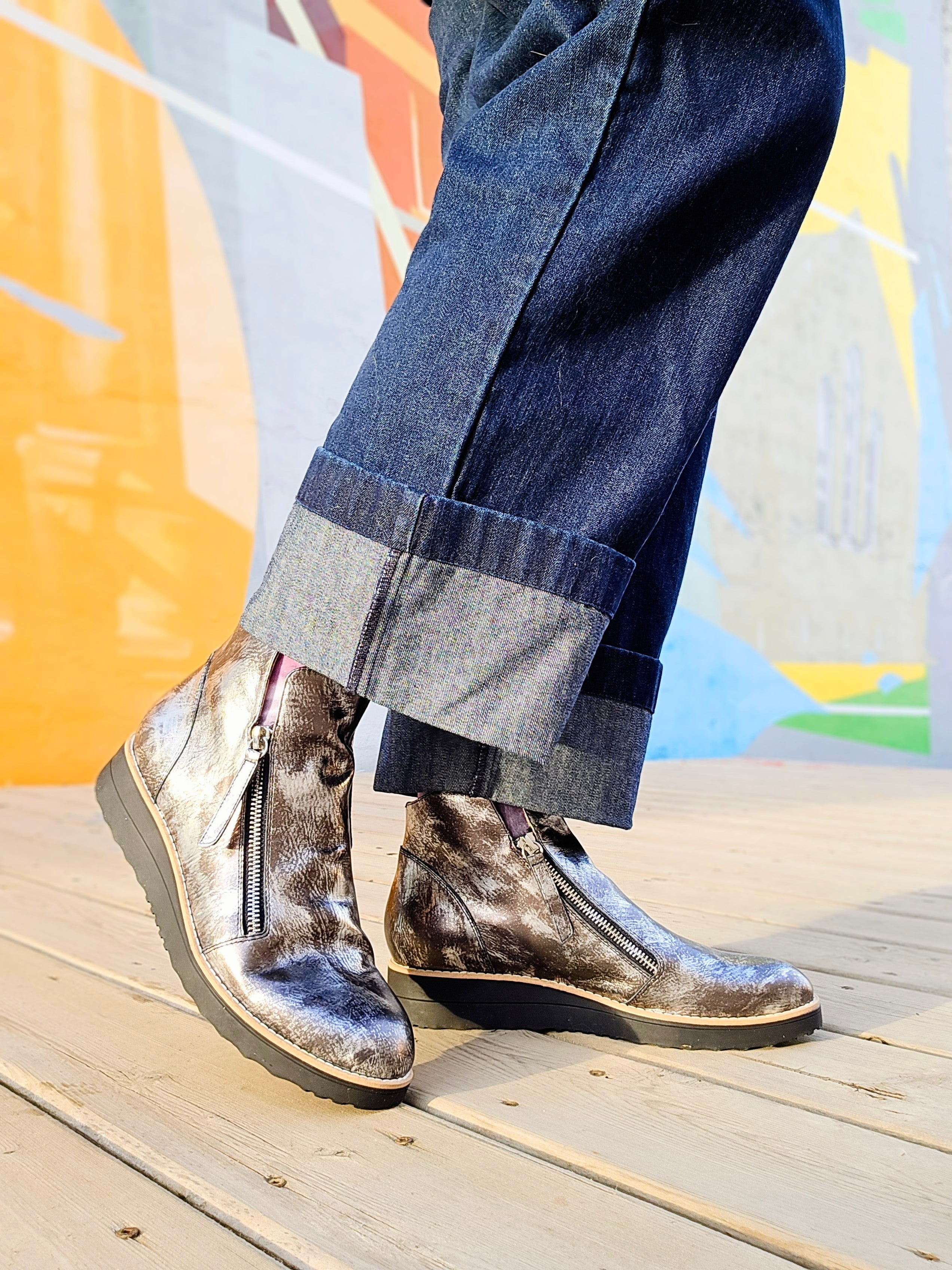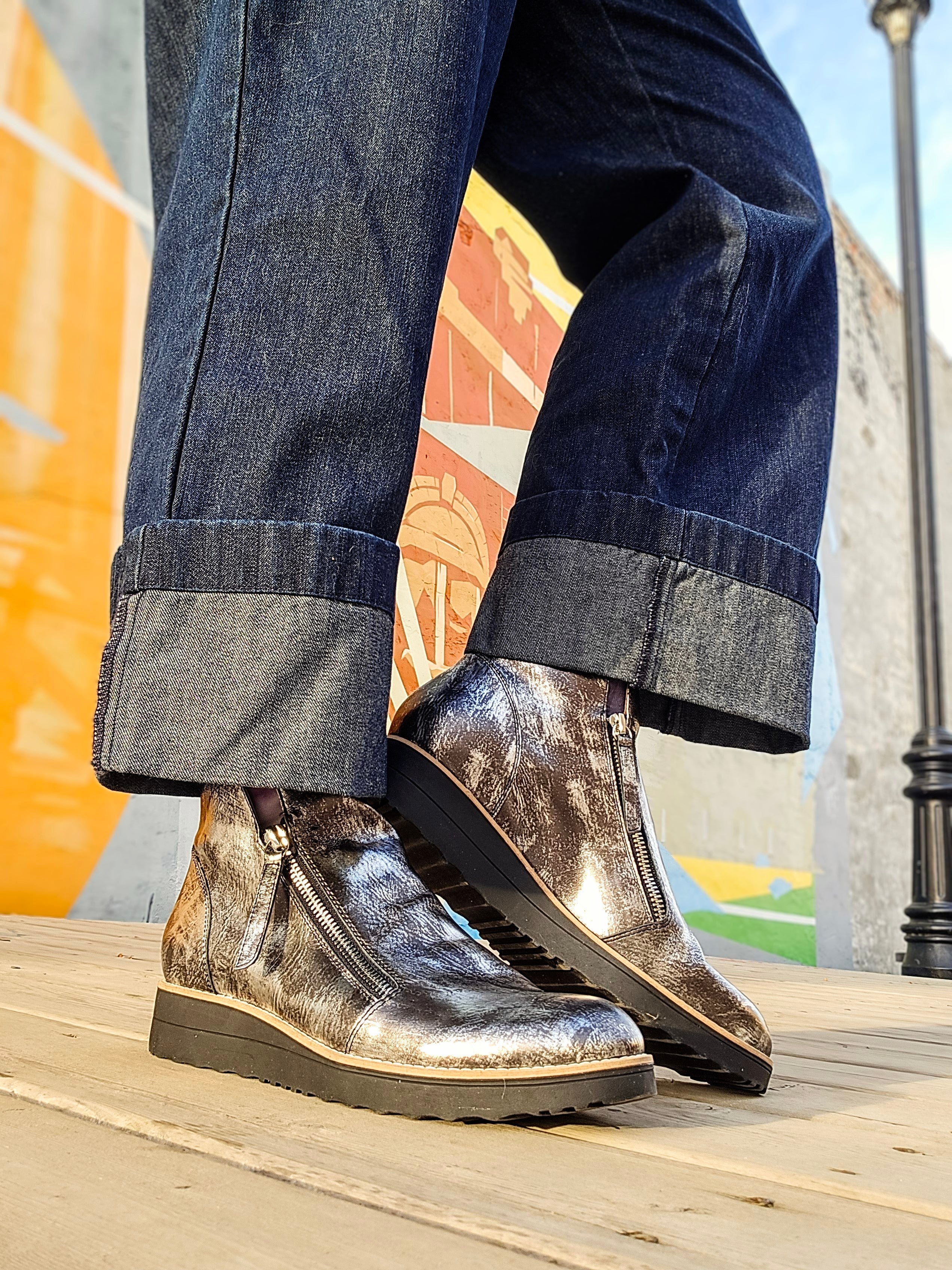The Oh My Boot from Django & Juliet combines sporty flair with comfort in a stylish bootie. Crafted from the softest leather, this design features a flat wedge sole that provides both support and ease of movement. Its slip-on style is complemented by two convenient zippers, allowing you to put them on and take them off effortlessly. Perfect for everyday wear, these boots offer practicality without sacrificing fashionable appeal.