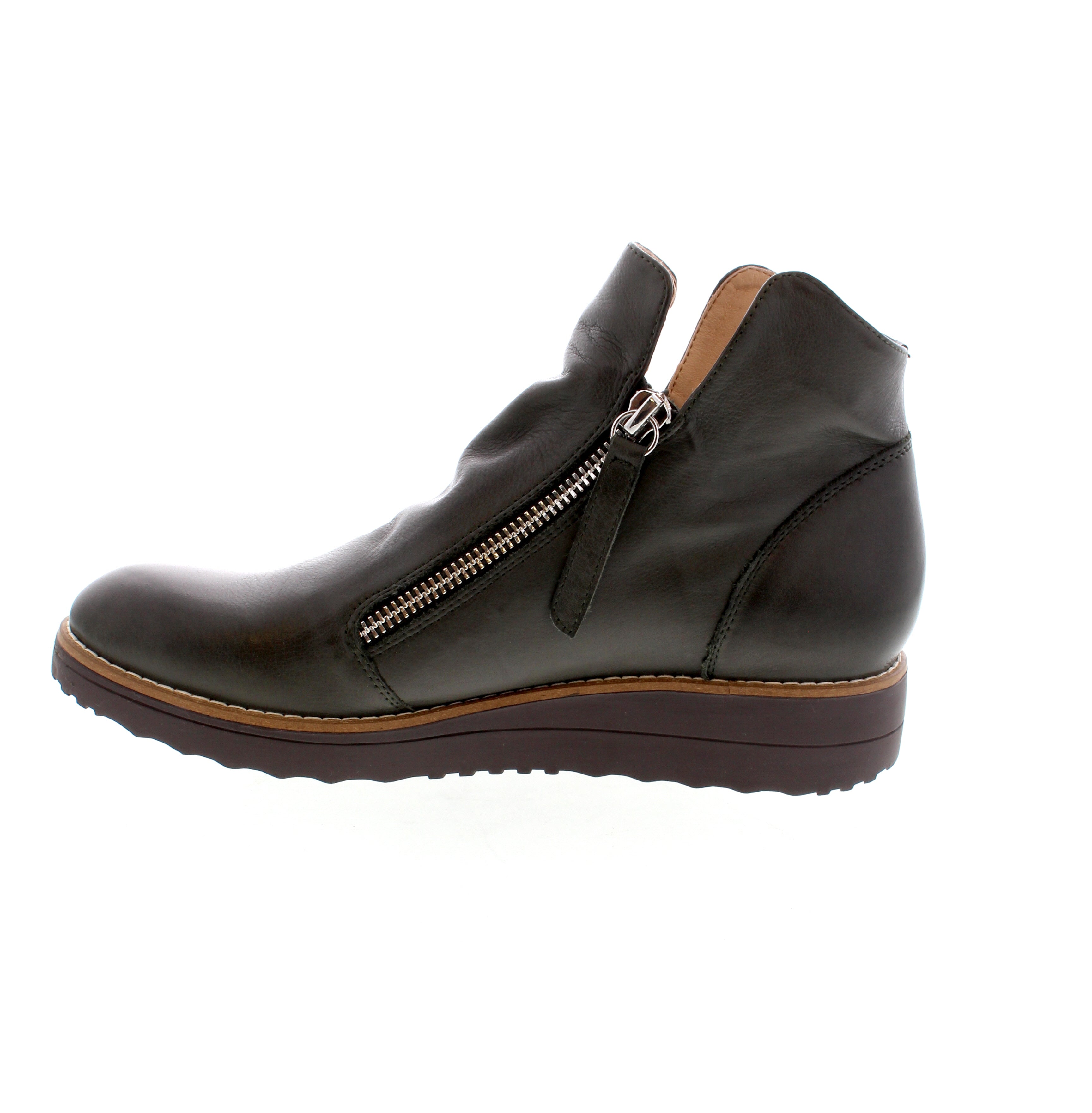 A sporty twist on a bootie - the Oh My Boot is designed with the softest leather with a flat wedge sole featuring a slip-on style and two zippers for easy accessibility.