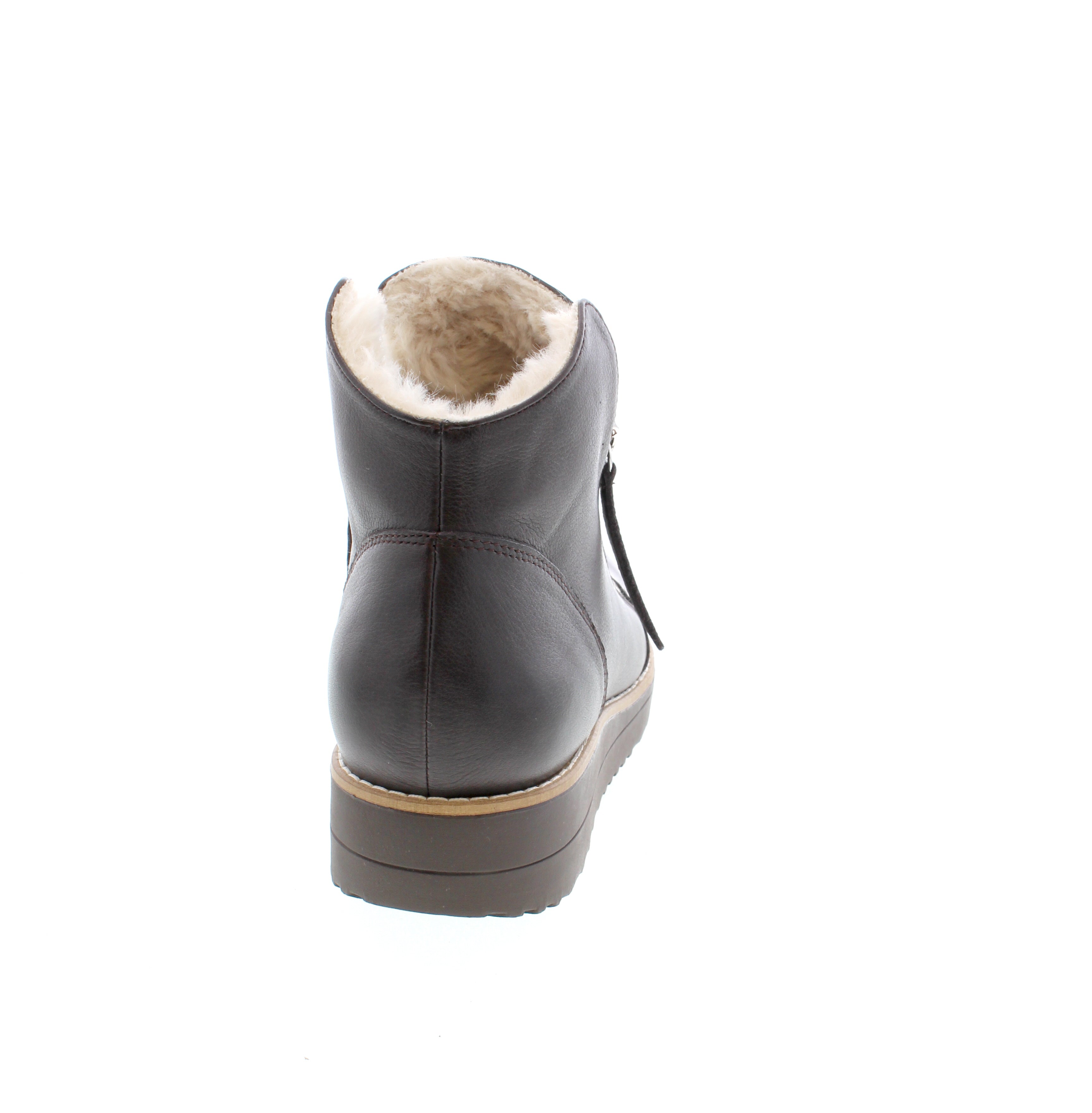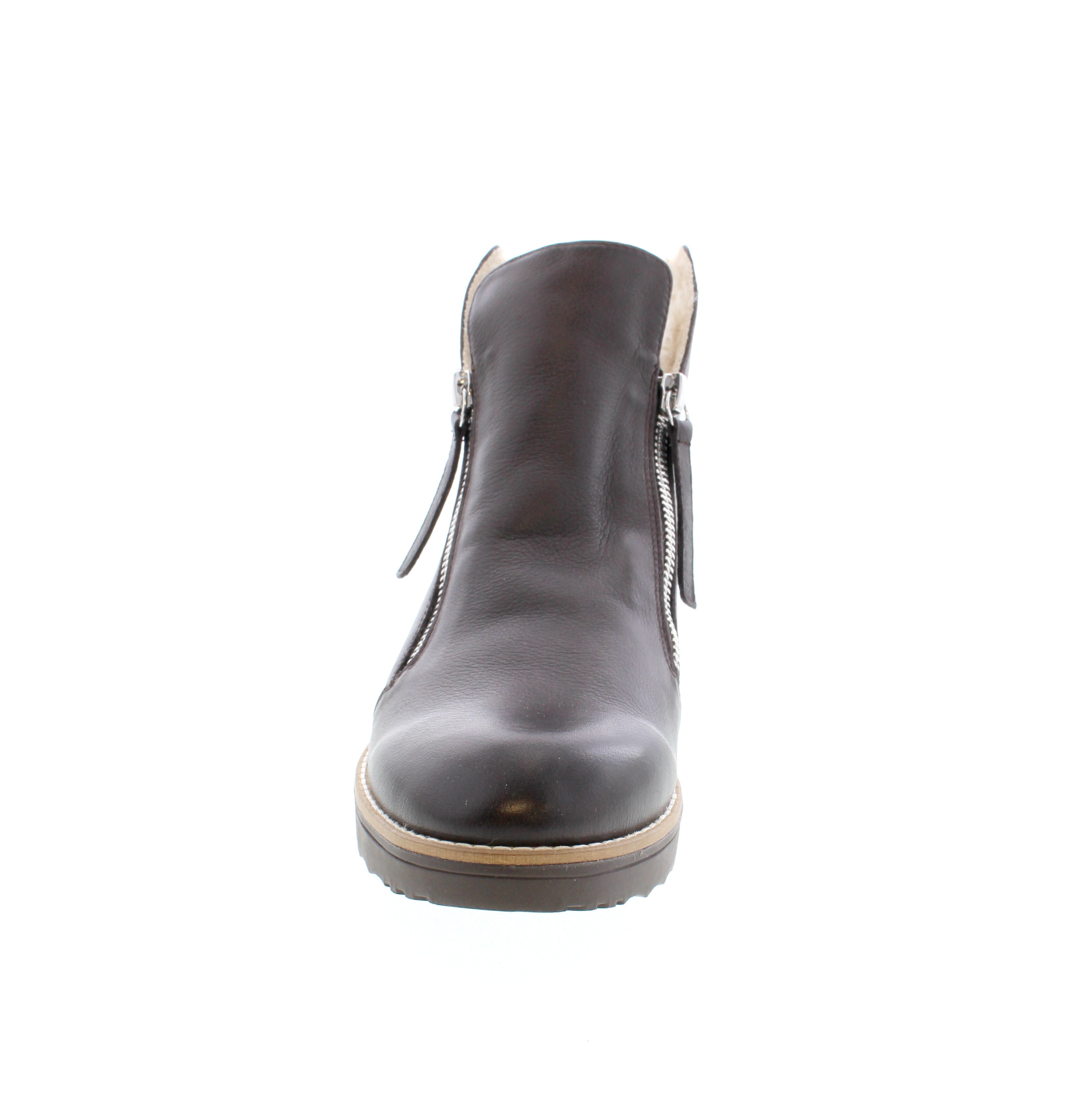 The Opal boot from Django & Juliette offers a sporty take on the classic bootie silhouette. Crafted from soft leather and lined with cozy fur, it ensures warmth and comfort throughout the day. The flat wedge sole provides gentle elevation without sacrificing stability, while the slip-on design is complemented by two convenient zippers to make wearing and removing the boots effortless. This combination of style and practicality makes the Opal boot a versatile addition to your footwear collection, perfect for both casual outings and cooler weather.