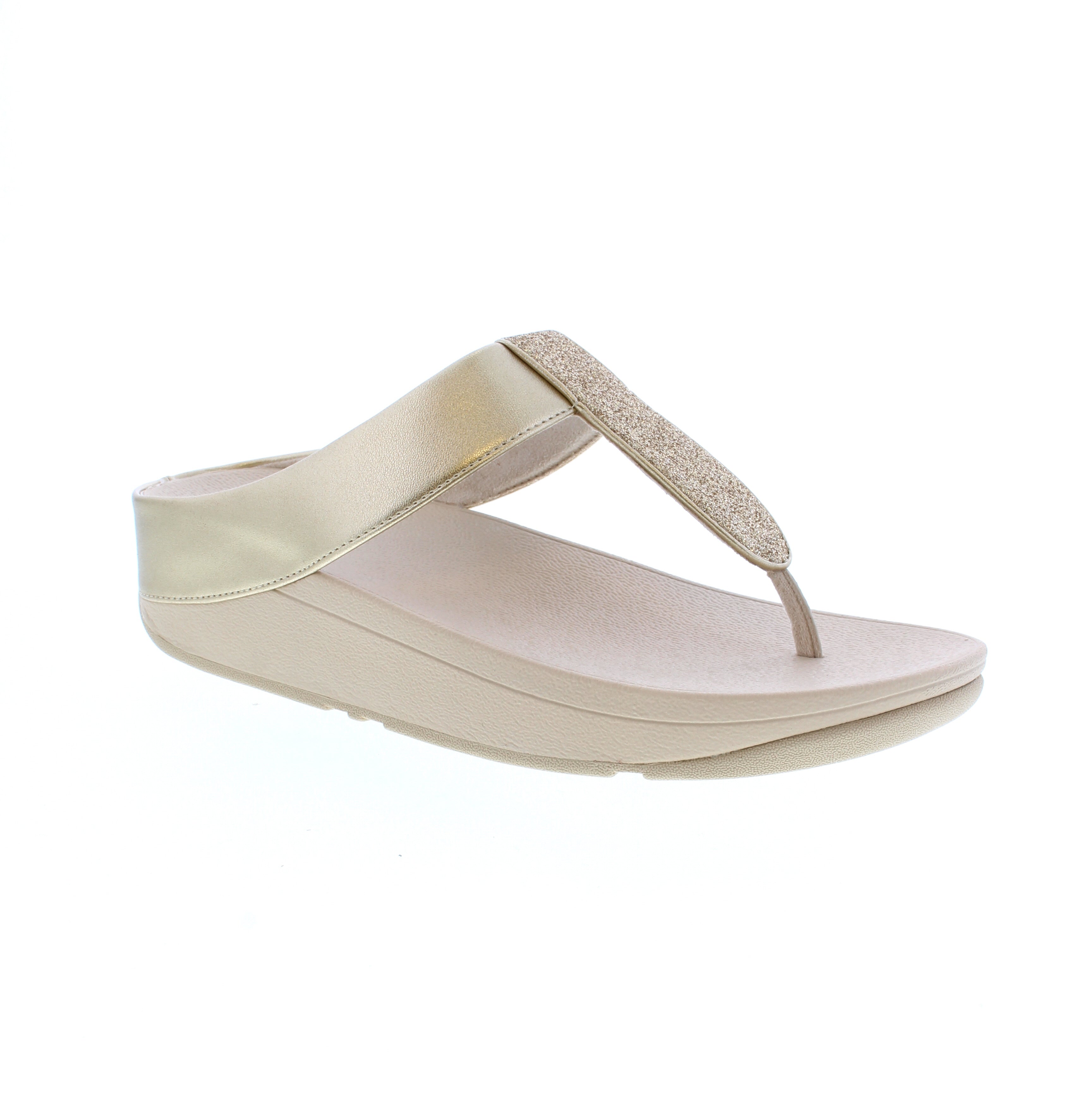 The Fitflop Fino Glitter Toe-Post Sandal is artfully made from soft leather, boasting a simple yet elegant design and a classic triangular vamp. Featuring Microwobbleboard™ midsoles for supreme comfort, these sandals are often likened to walking on clouds.