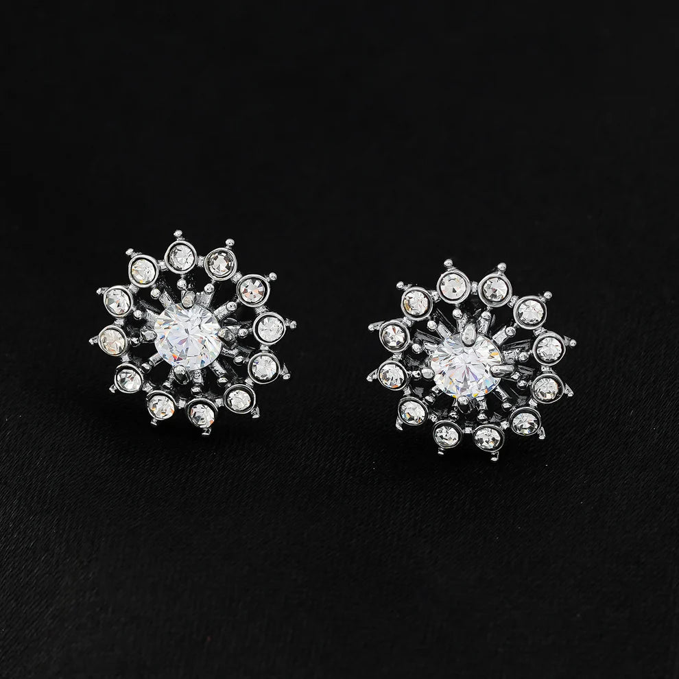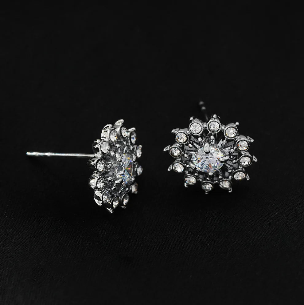 Hackney Nine Kerala Silver Stud Earrings feature a striking star design adorned with sparkling AAA-grade zirconia gemstones. A larger centerpiece stone anchors the design, creating a brilliant halo effect that catches the light beautifully. Perfect for special occasions or everyday elegance, these earrings deliver timeless sophistication with eye-catching sparkle. Key Features: Premium Quality Materials: Crafted with top-grade materials, ensuring durability and long-lasting shine. AAA Zirconia Embellishments: Each star is adorned with triple AAA zirconia, providing a radiant, diamond-like sparkle. Elegant Design: The shiny star motif adds a touch of celestial beauty to your look, suitable for both everyday wear and special events. Hypoallergenic: Made from hypoallergenic materials, perfect for sensitive ears.