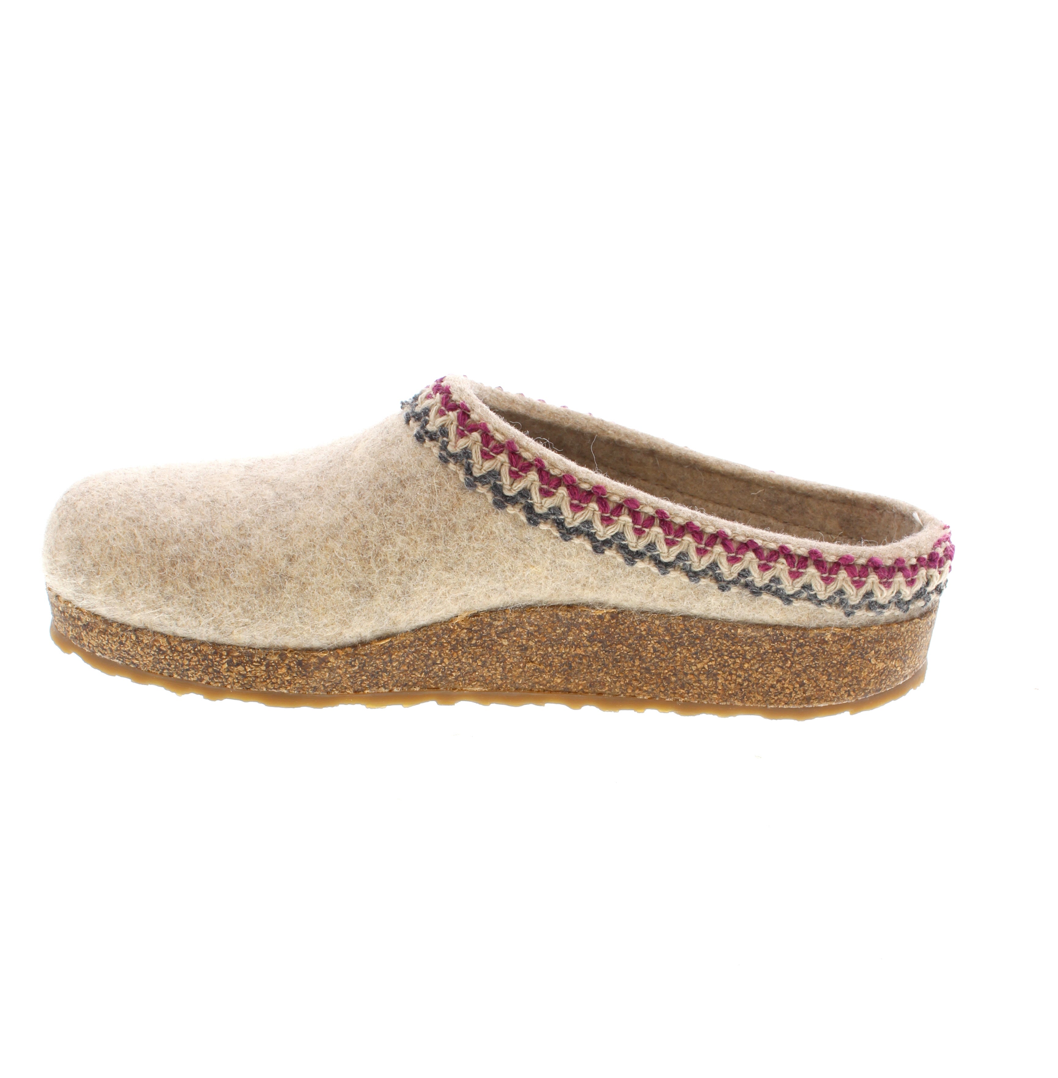 Experience unmatched comfort with the Haflinger Zigzag clog. Crafted from 100% pure wool felt, it offers breathability and durability, keeping your feet cozy and temperature-balanced indoors or outdoors. The anatomically contoured footbed supports your arches, while the felt-lined insole wicks moisture to maintain a fresh, healthy environment. Perfect for those seeking casual style without compromising on comfort.