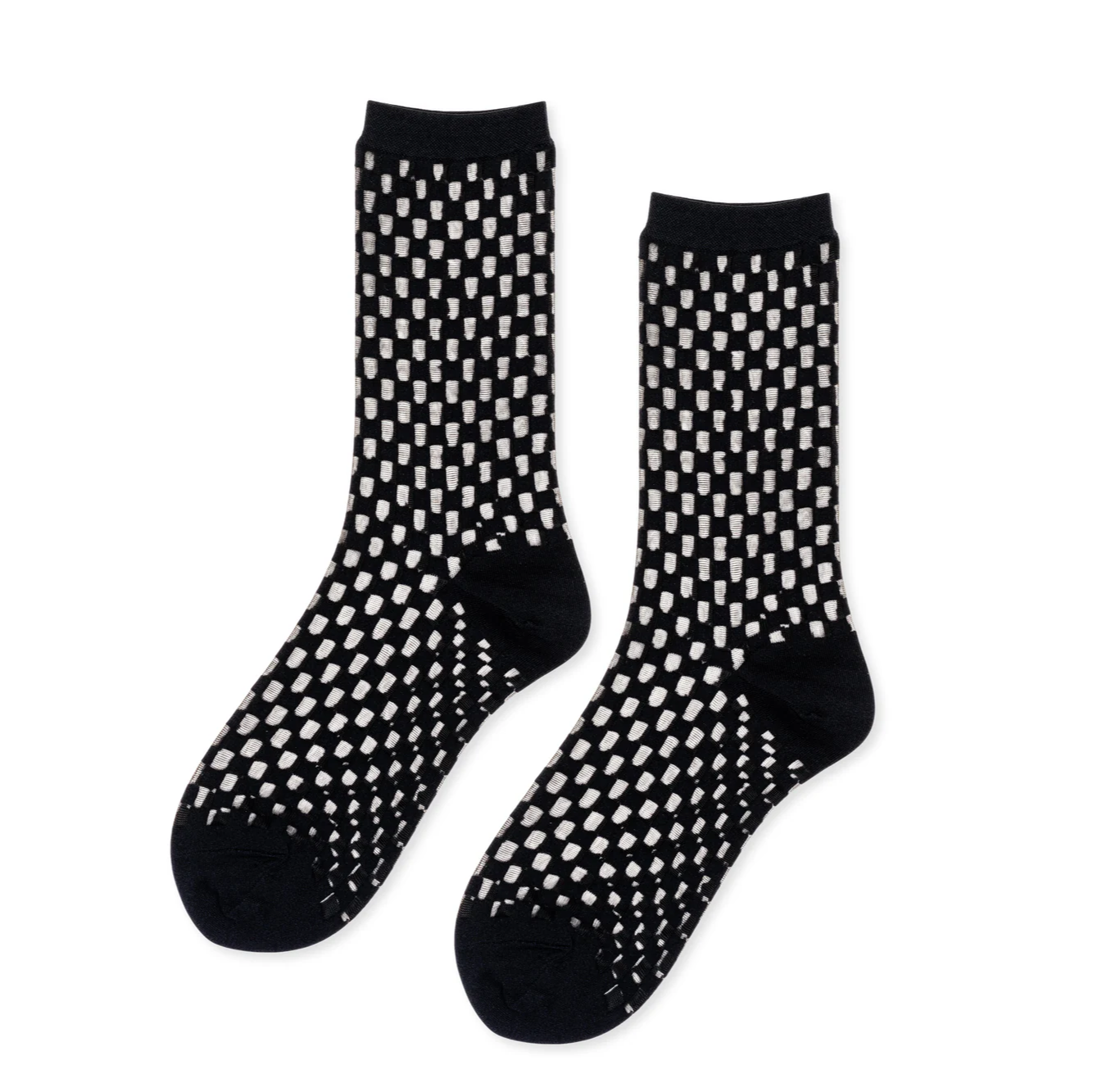 Elevate your sock game with the Hansel From Basel Anise Sheer Crew Socks in Black. Featuring a delicate sheer fabric adorned with tiny checkered squares, these socks bring a subtle yet stylish touch to any outfit. The lightweight material ensures breathability and comfort, making them perfect for all-day wear. Designed to combine classic patterns with a modern twist, these crew socks highlight your unique style while maintaining a sleek and polished look. Ideal for those who appreciate both fashion and comfort in their everyday essentials.