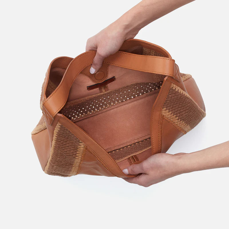 The Hobo Bags Daisy has a leather exterior embellished with crocheting, a convenient top zipper, and is roomy enough to store all your essentials!