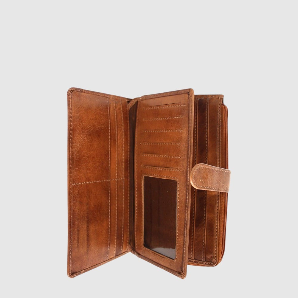 This long hunt leather wallet with central cards flap will keep all your cards organized in style.