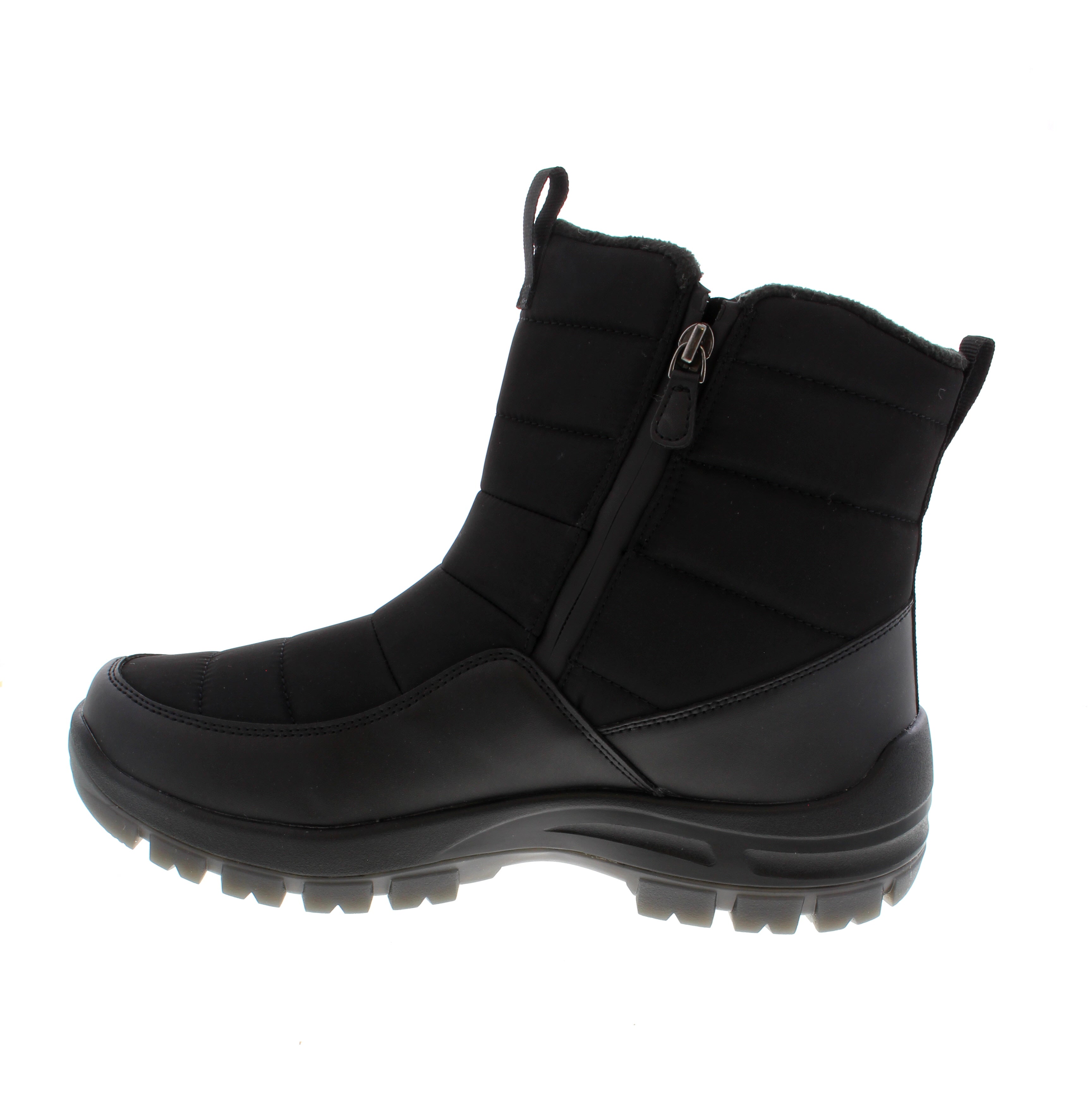 The Josef Seibel Alaska 51 is a men’s winter ankle boot engineered for exceptional warmth and durability. Its combination of textile and velour leather manmade materials offers a sophisticated look while standing up to winter wear. Designed with both a zip-up closure and lace-up fastening, this boot provides easy on and off along with a secure, adjustable fit. The waterproof TEX-membrane keeps feet dry in wet weather, and the cozy lining ensures insulation against the cold. Featuring a sturdy PU/TPU sole, it delivers reliable traction and stability on slippery or uneven surfaces. A removable insole accommodates custom orthotics, offering enhanced comfort tailored to your needs for all-day wear in challenging winter conditions.