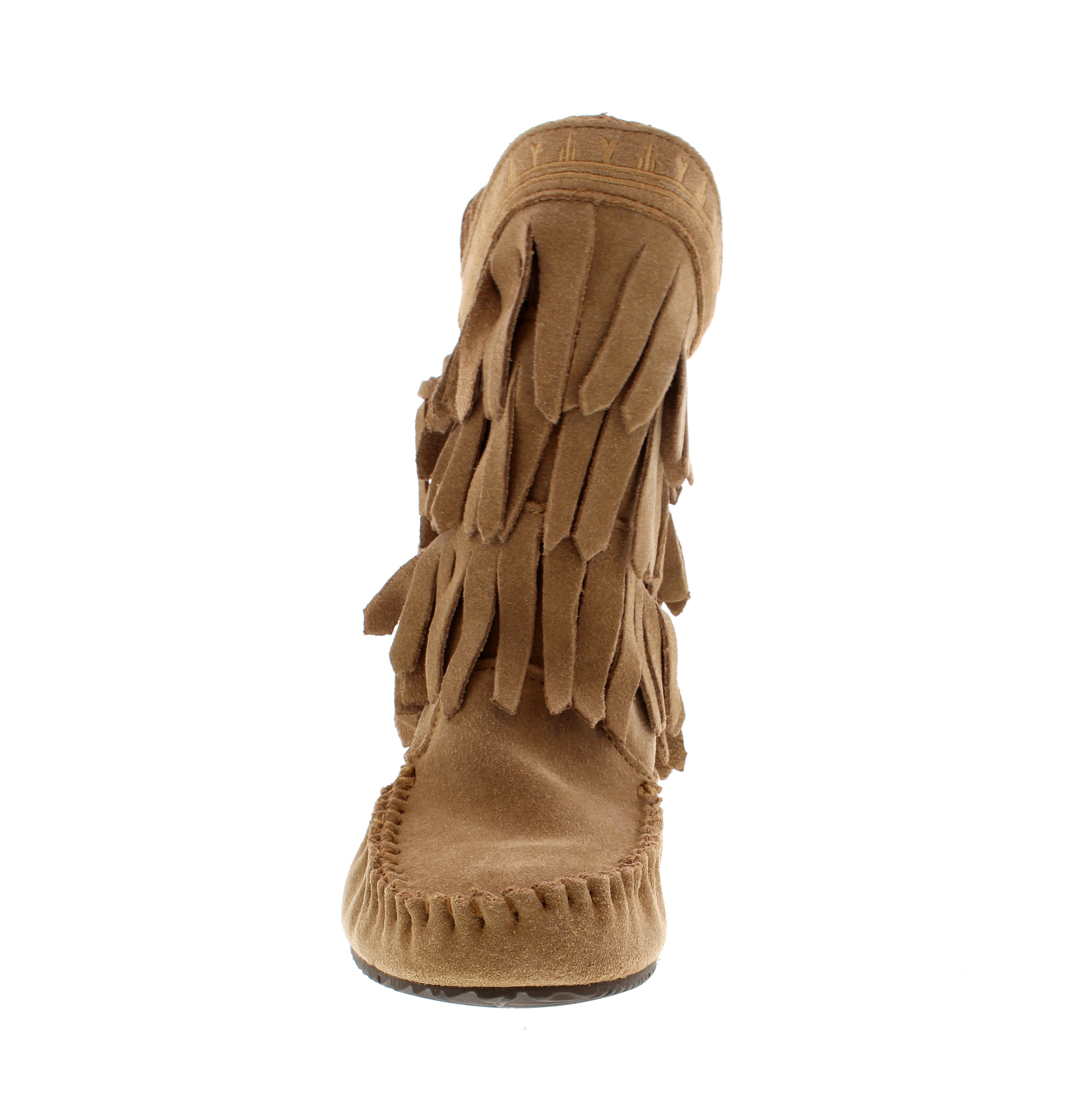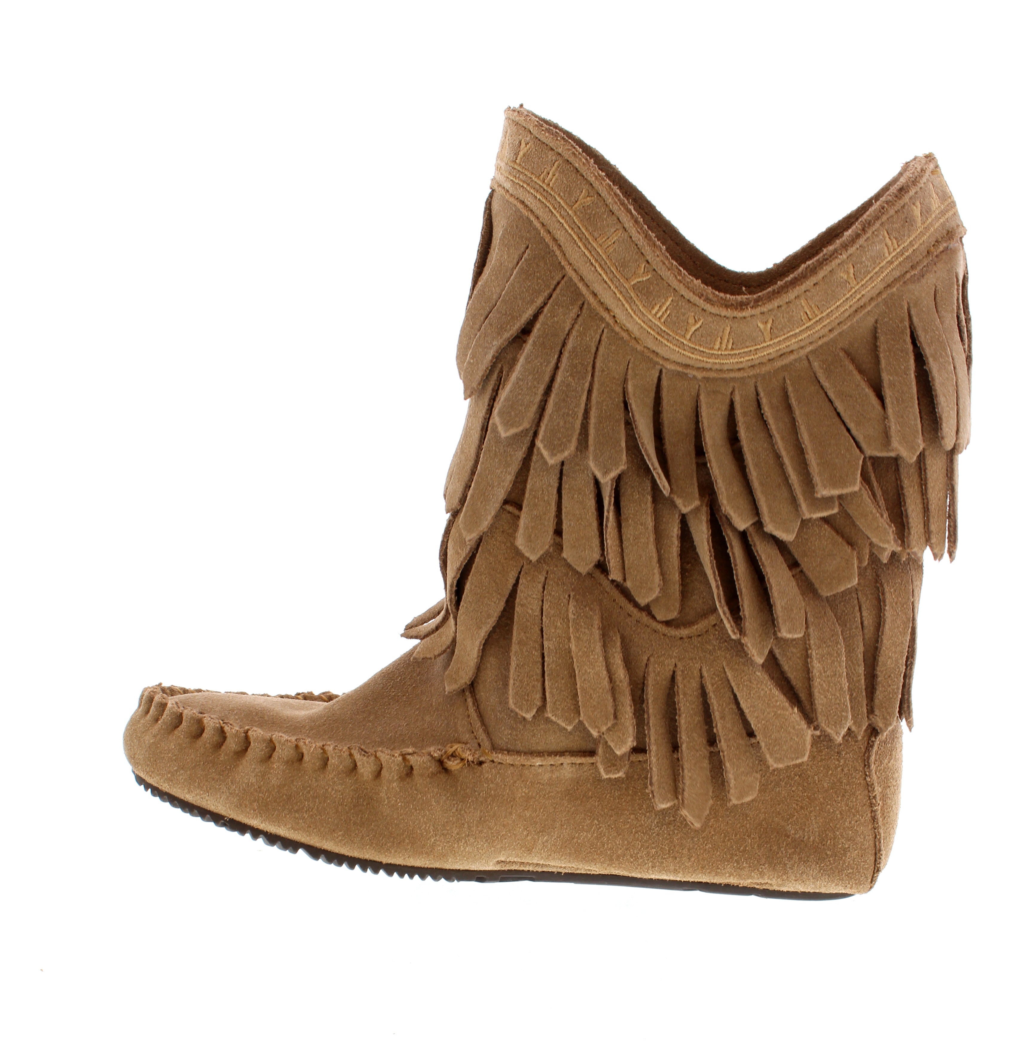Elevate your footwear collection with the Manitobah Dancer in Oak. Expertly crafted from soft suede, these boots showcase a moc-stitch toe for timeless style complemented by suede fringe detailing that adds dynamic movement to every step. Designed for those who appreciate superior craftmanship and distinctive design, this boot offers both comfort and a statement-making look.