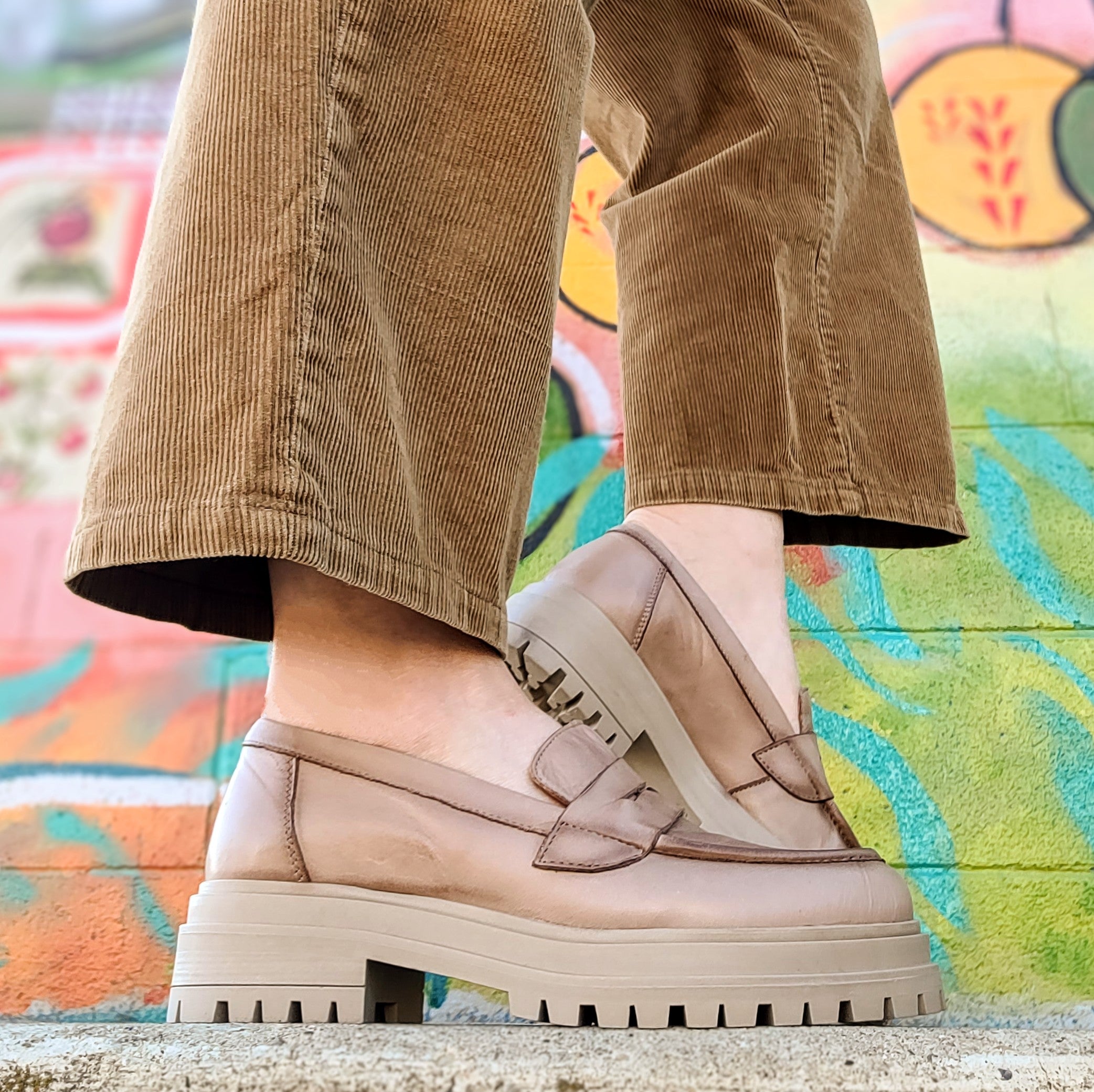 Miz Mooz Legend adds some funk to the classic loafer design. With a chunky treaded sole and a classic loafer upper - these shoes are ready to take on the town!