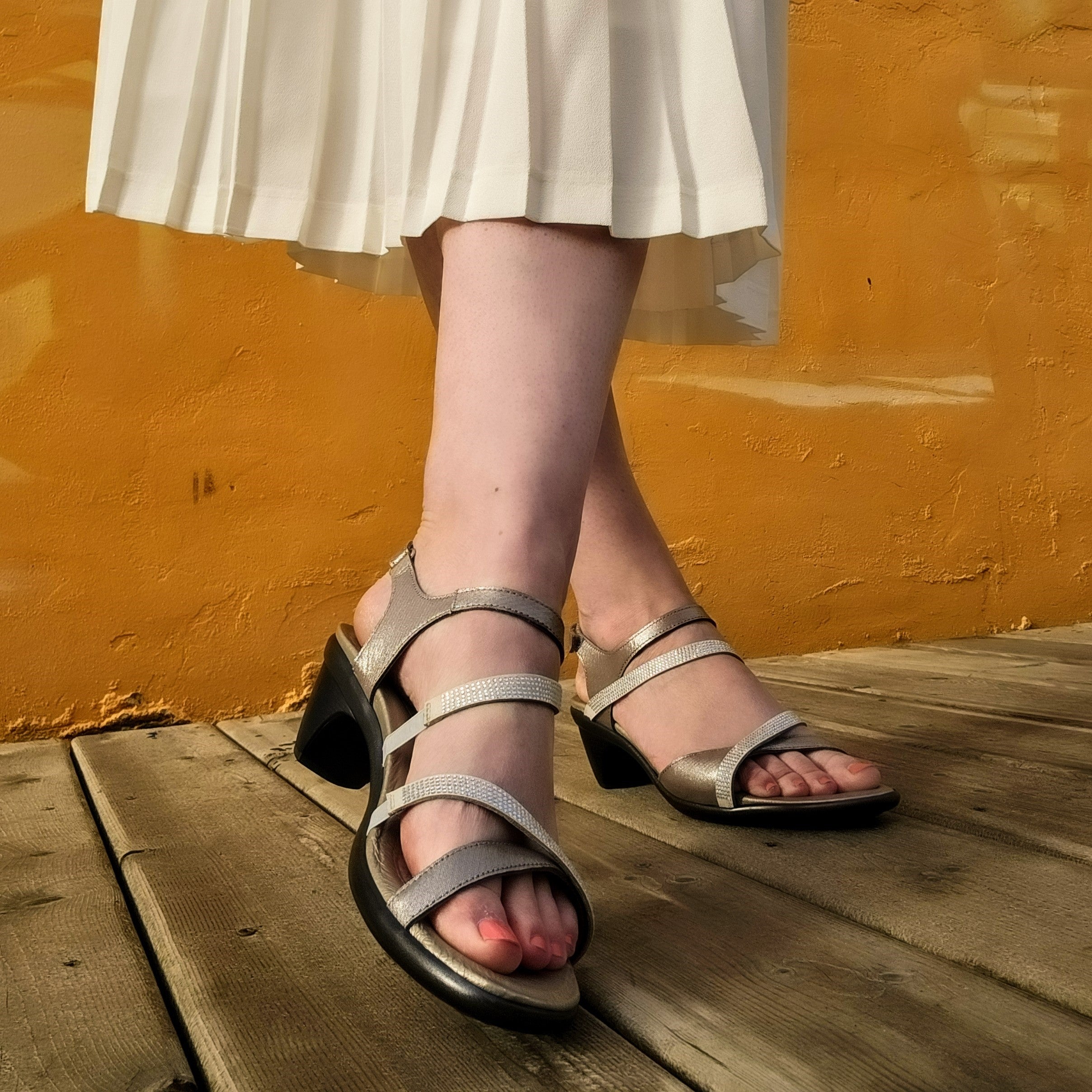 The Innovate sandal is an ideal choice for your festive gatherings, featuring a hook-and-loop backstrap and elastic gore on the middle straps for a personalized fit. Its padded front strap ensures exceptional comfort, while delicate rhinestone details add a refined touch. Naot’s anatomical cork and latex footbed, wrapped in leather with a microfiber center to prevent slipping, gradually molds to your foot’s shape. Part of the Avantgarde Collection, it boasts a TPR sole with a metal shank, providing the elegance of a 2" heel without the usual discomfort.