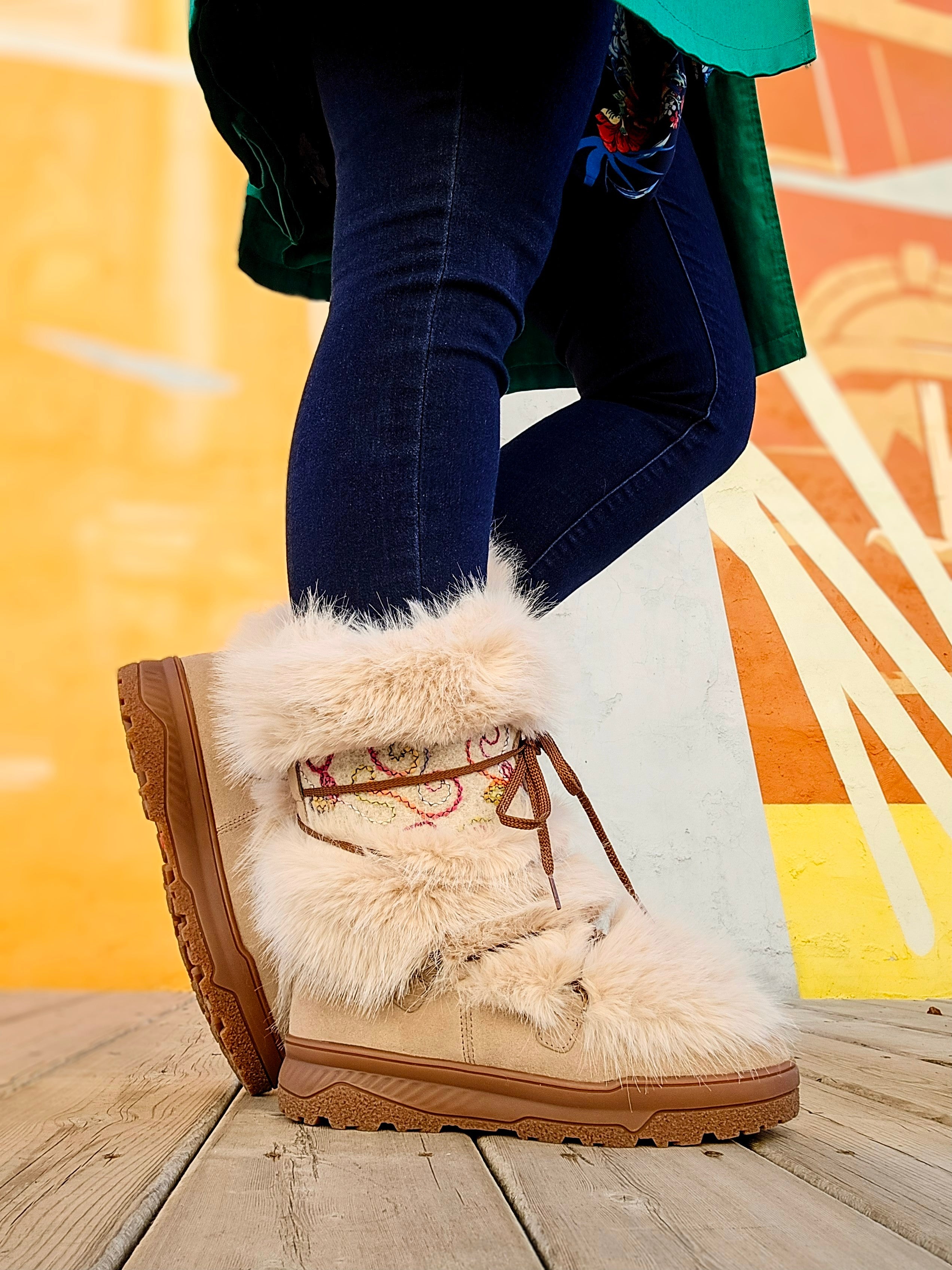 The Olang Wanda in Beige is a mid-calf boot designed for performance and comfort. Featuring an insulated waterproof upper, it keeps your feet warm and dry in harsh weather. The orthotic-friendly design ensures customizable support, while the vegan-friendly faux fur upper adds a touch of stylish warmth without compromise. Ideal for those seeking durable, functional footwear with thoughtful details.