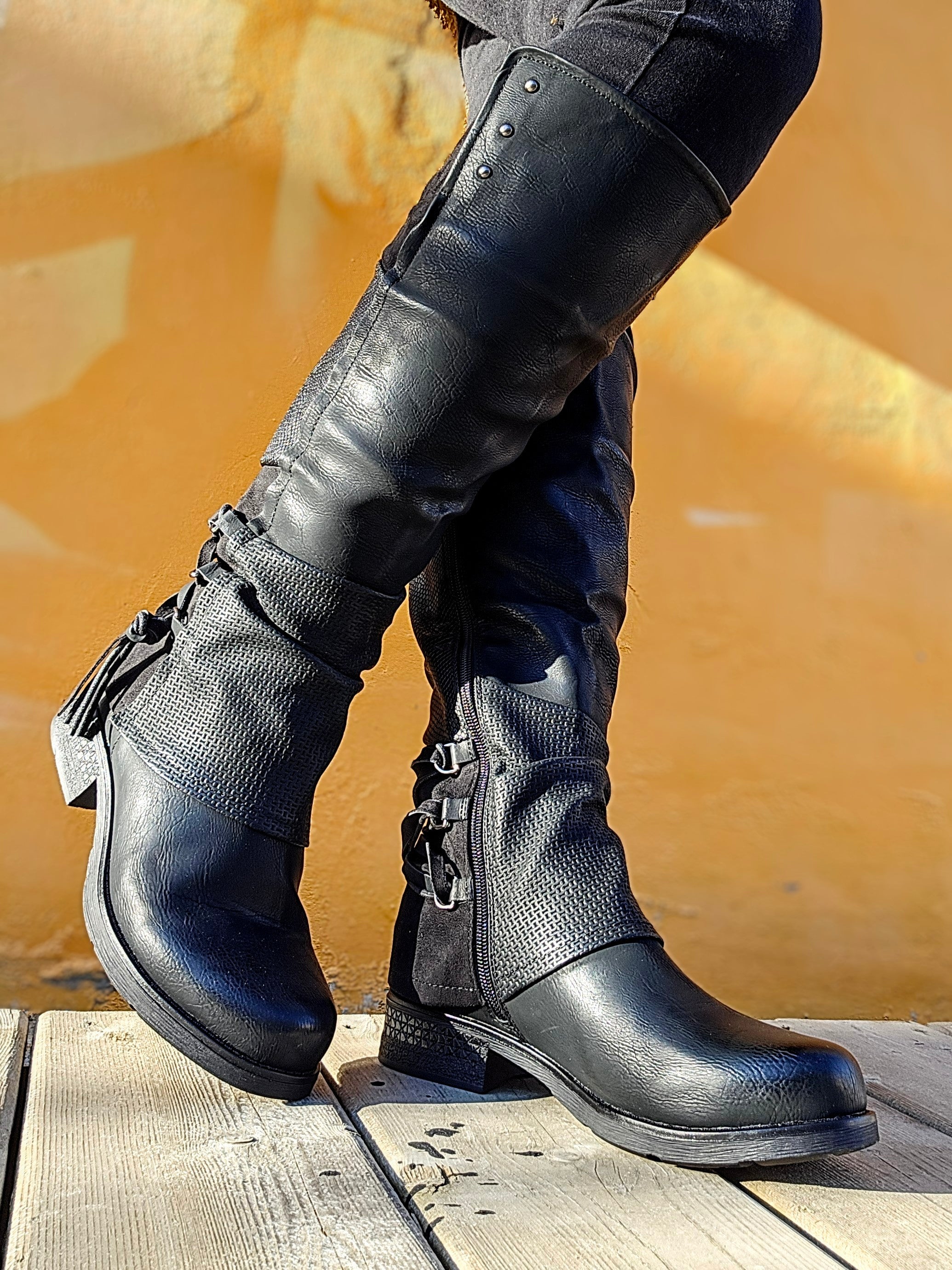 The Patrizia Maxie tall boot is sure to turn heads! Crafted from Vegan leather, this knee-high boot is designed with a side zipper for easy on/off, ruching, panelling, lace-up detailing and a gripped sole for traction to bring you the perfect combination of fashion-forward design without sacrificing comfort!