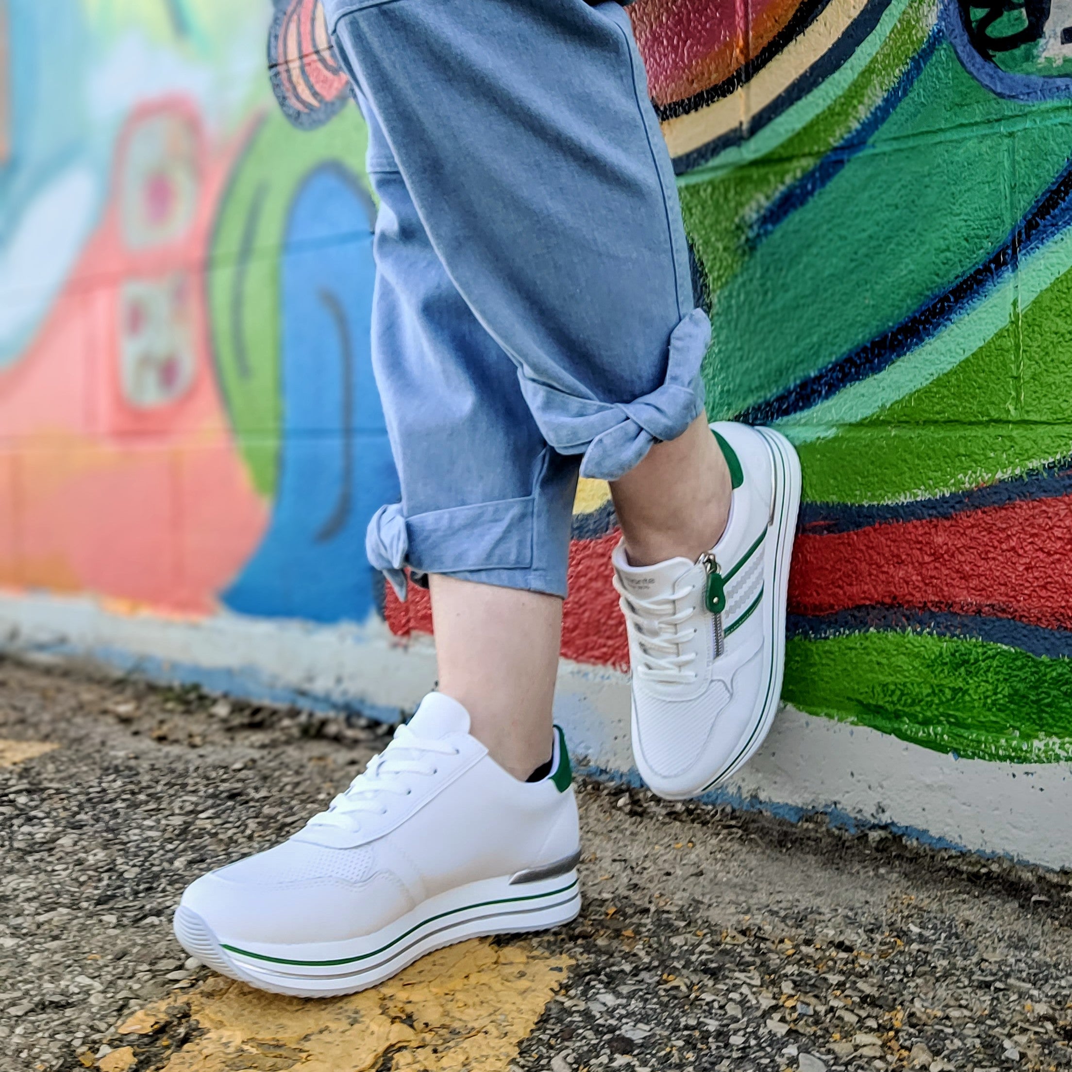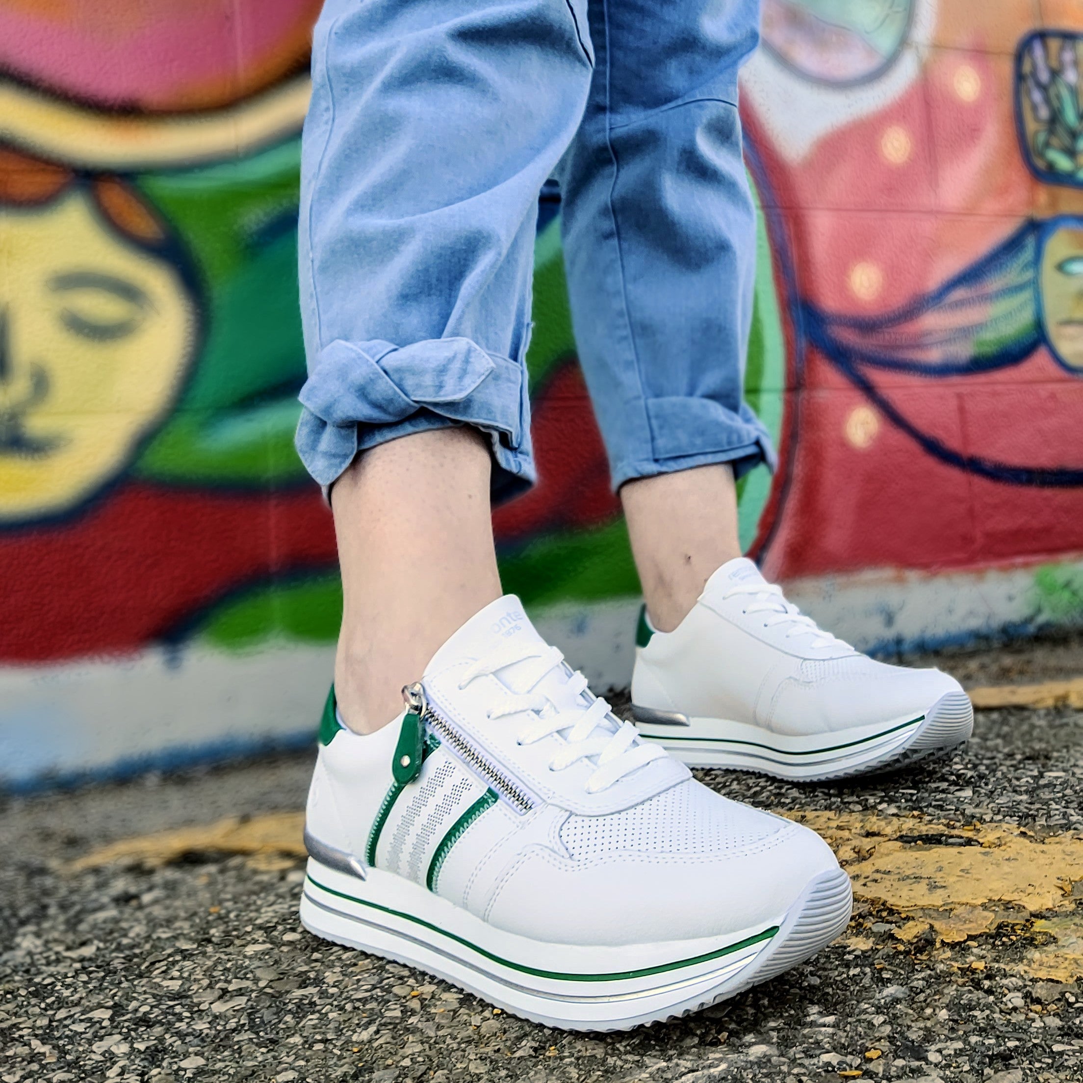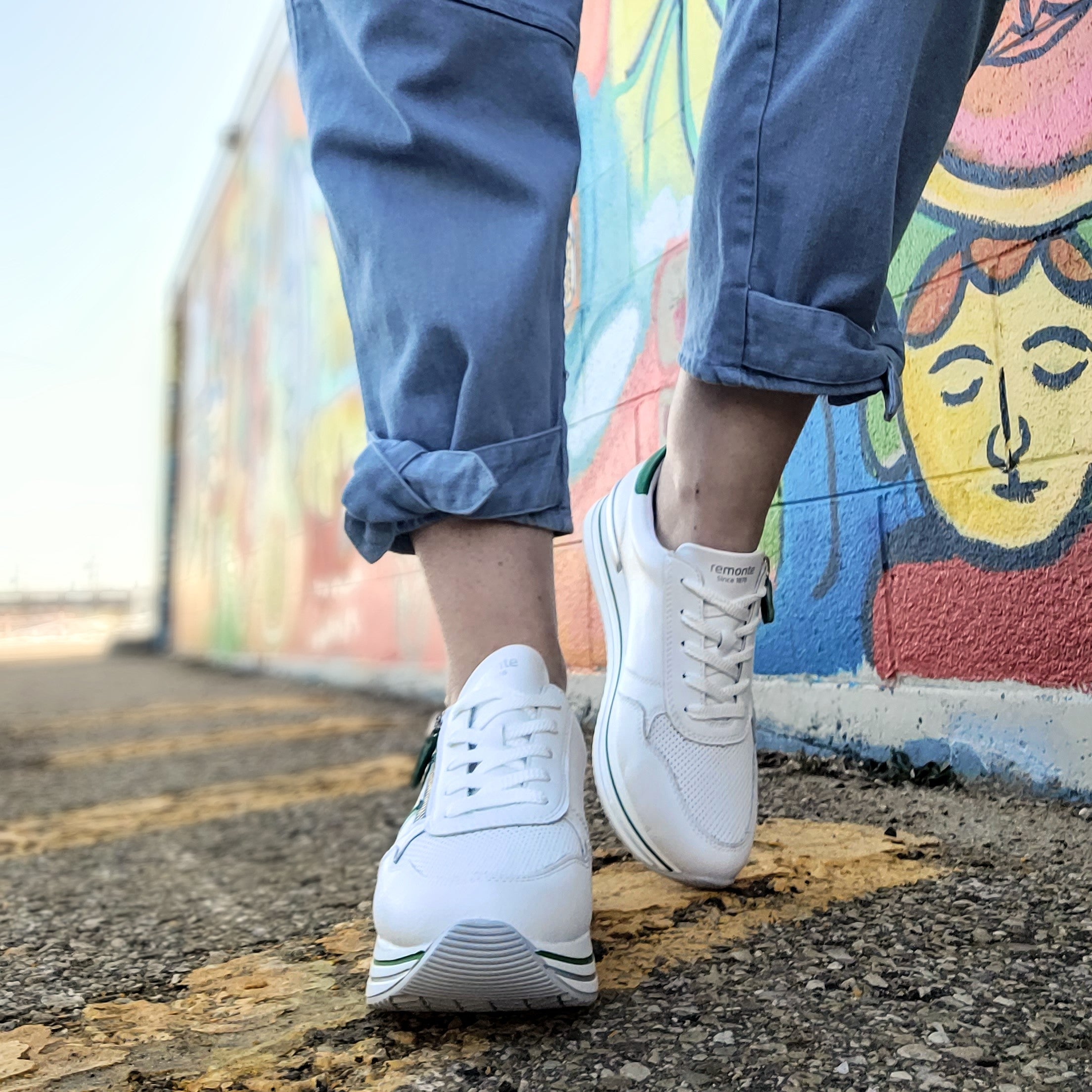 The D1318-82 sneaker from Remonte will have you walking the streets in fashionable comfort! Designed with a side zipper and lace-up front, this platform sneaker is ready for everyday wear!