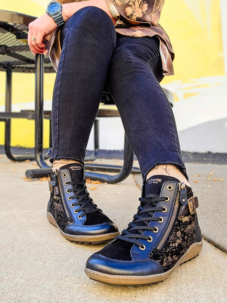 Step into comfort and style with these Black Remonte suede leather lace-up boots! Featuring a clever mix of laces and a handy zipper, they’re easy to slip on and off while giving your feet the perfect fit. The flexible, grippy sole keeps you steady, and the padded removable insole adds cozy support. Plus, with a roomy comfort width, your toes can wiggle freely all day long. These boots aren’t just shoes—they’re your new favorite go-to for effortless cool!