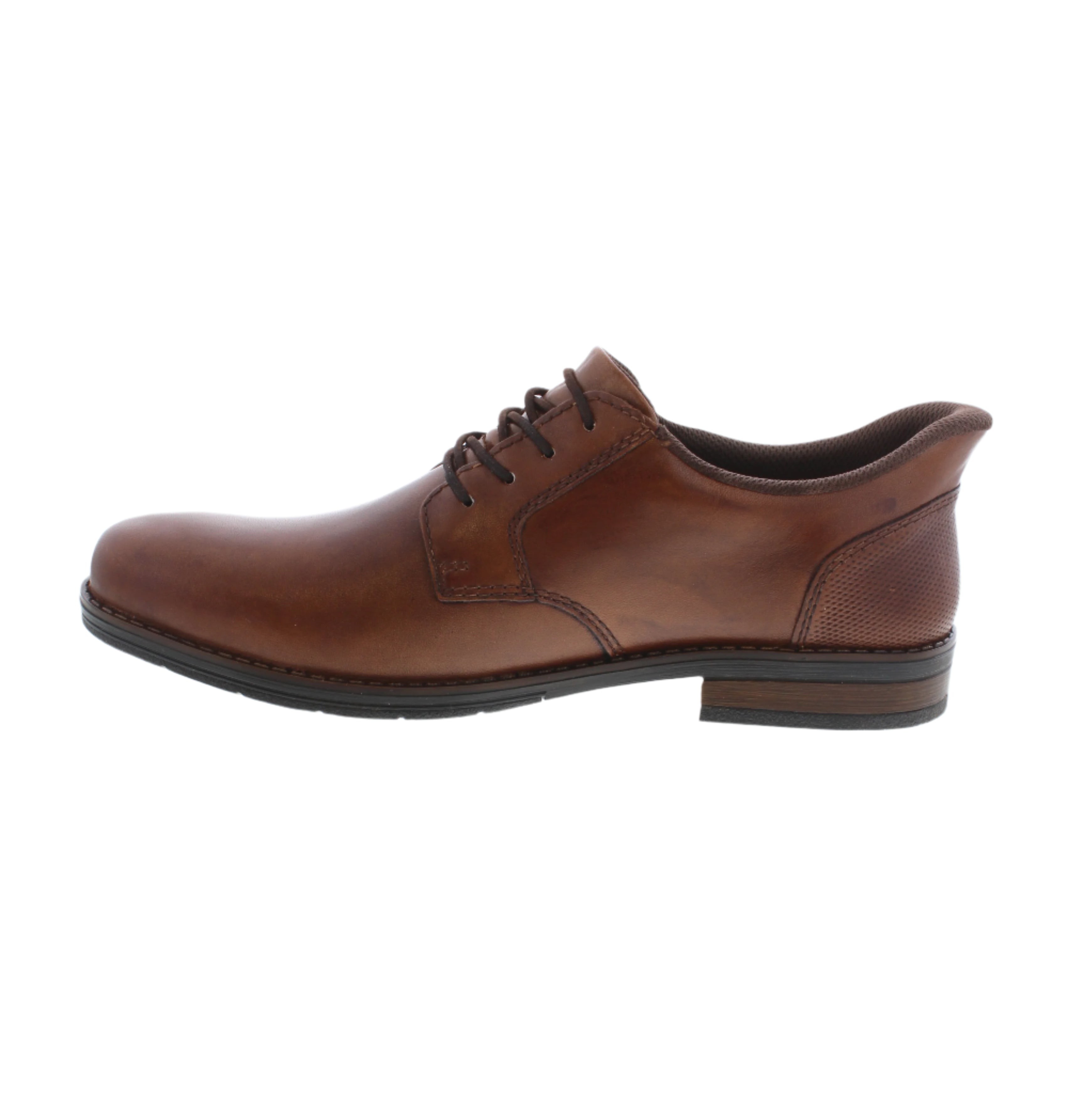 Introducing the Rieker 10353-24 dress shoe in sleek black leather! Made with traditional stitchdown technique for durability and flexibility, and designed with elastic bands, grippy sole, and extra soft cover sole for comfort. With a comfort width and easy step-in feature, this is the ultimate shoe for work or a special event.