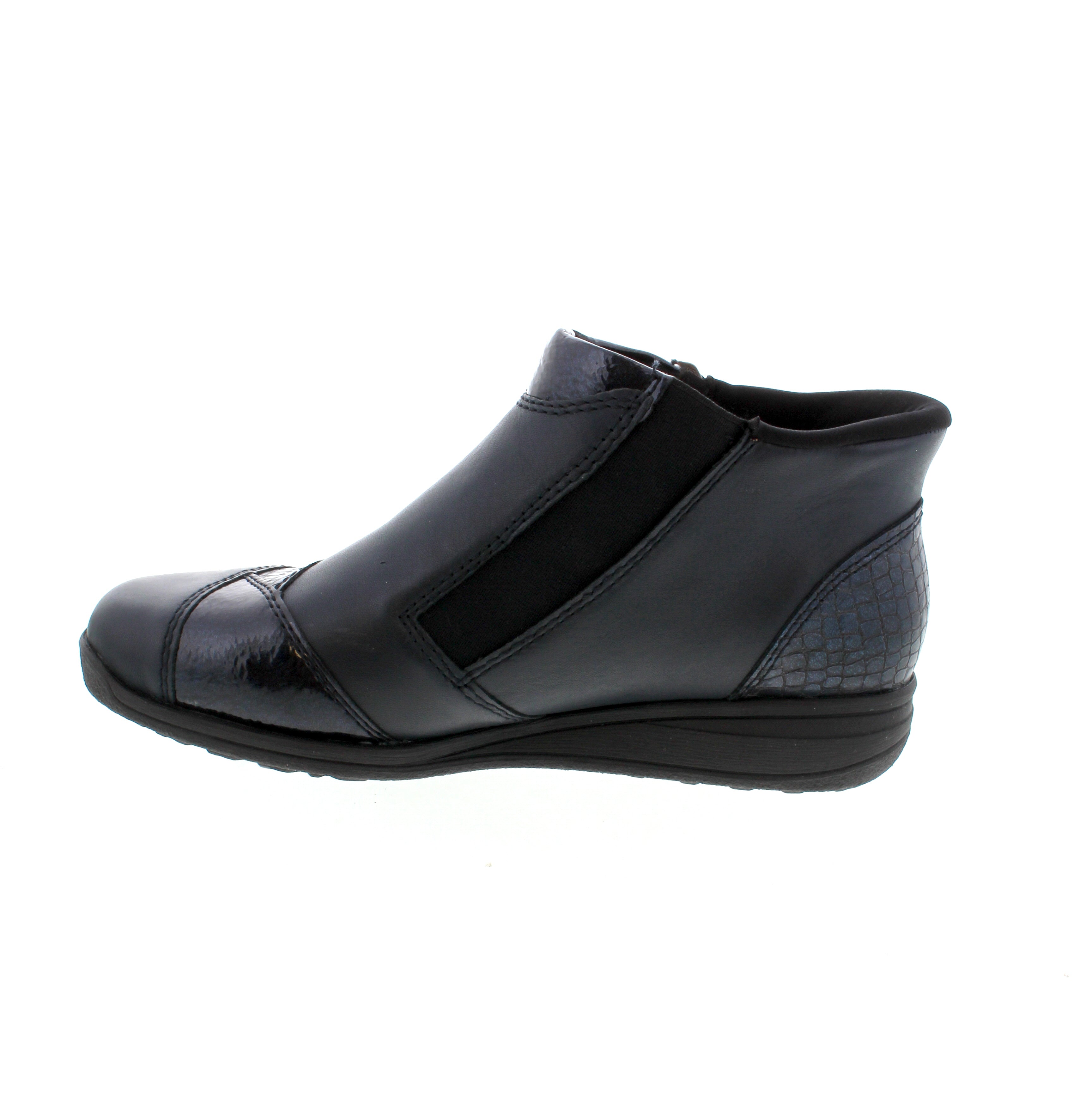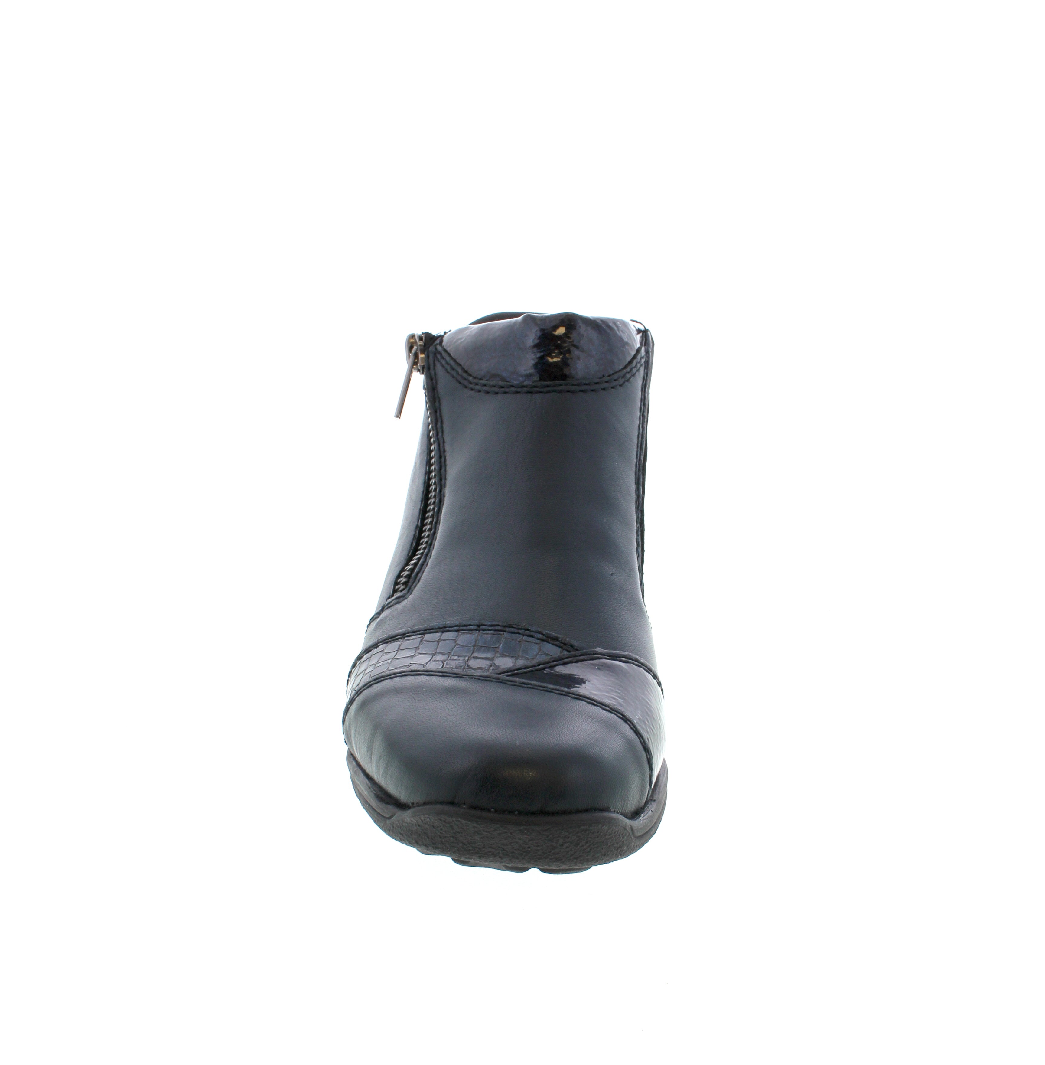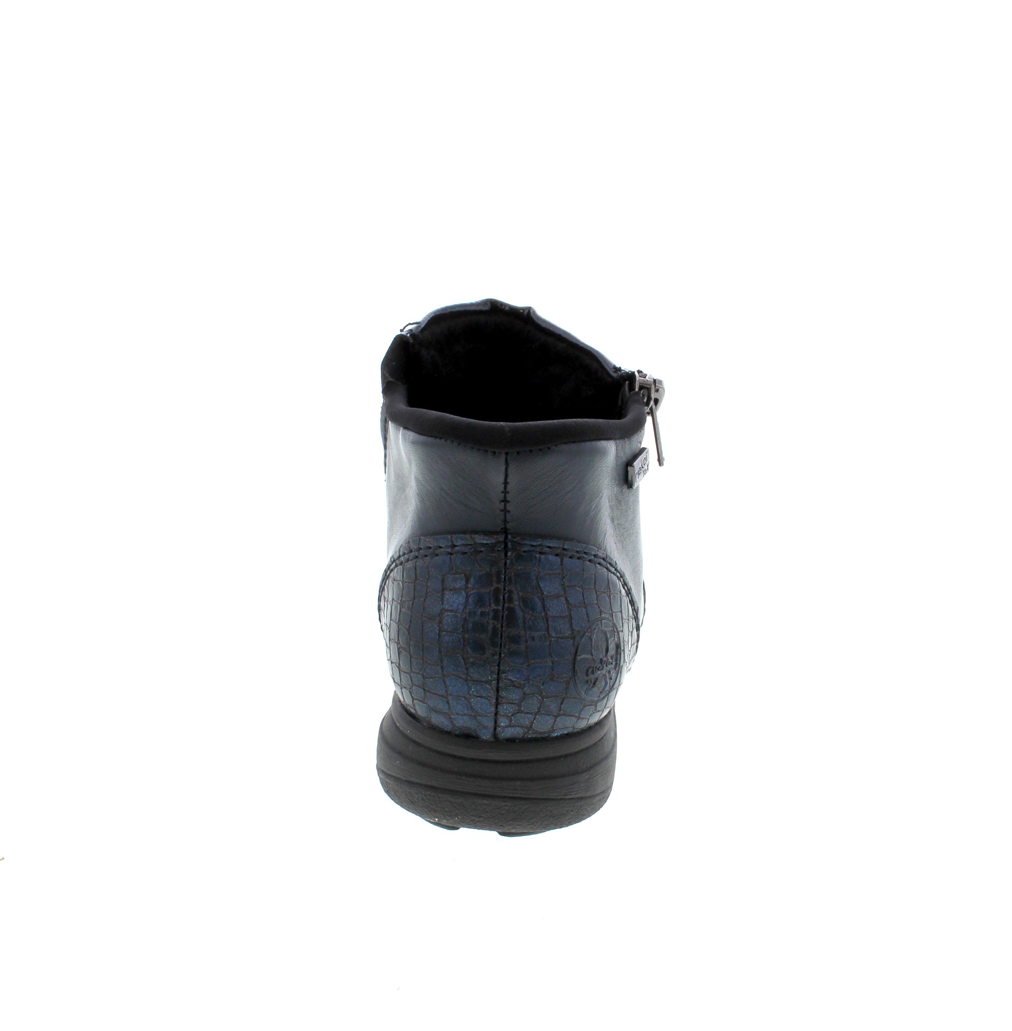 The Rieker 47254-14 ankle boot in Midnight features a premium leather upper paired with a cozy faux fur lining for superior comfort. Designed to be orthotic-friendly, it accommodates custom insoles without compromising fit. The convenient side zip ensures easy on and off, making this boot a practical yet stylish choice for daily wear in cooler seasons.