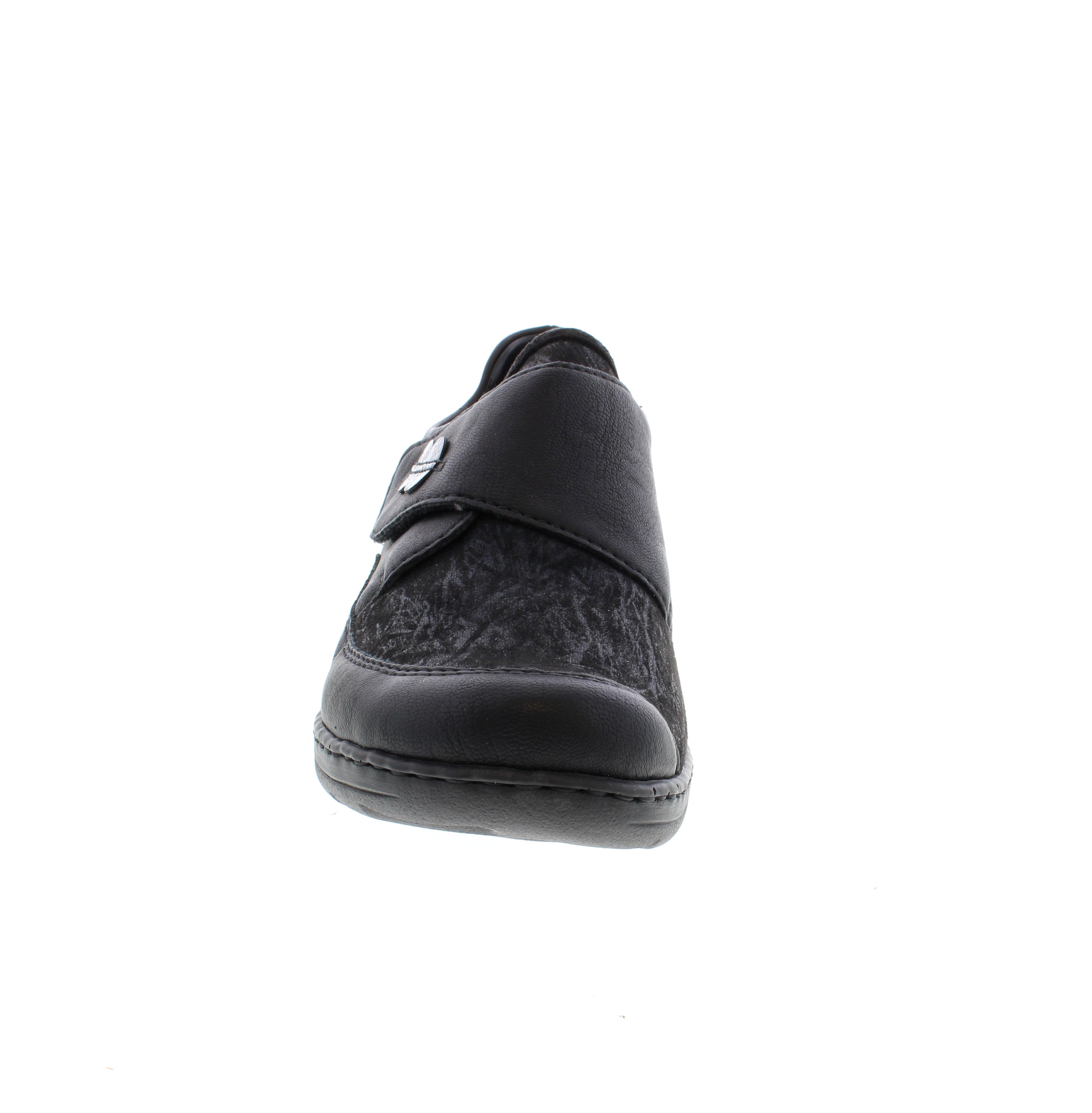 Step out in style and comfort with the Rieker 48954-00. Its traditional stitchdown construction ensures flexibility and durability for a perfect fit. The convenient velcro fastener makes putting on and taking off effortless. Enjoy all-day comfort thanks to the shock-absorbing, lightweight sole and extra soft cover sole. Designed with extra width, these shoes provide ample room for your toes, allowing natural movement without compromise. Ideal for any occasion, these shoes combine practicality with modern style.