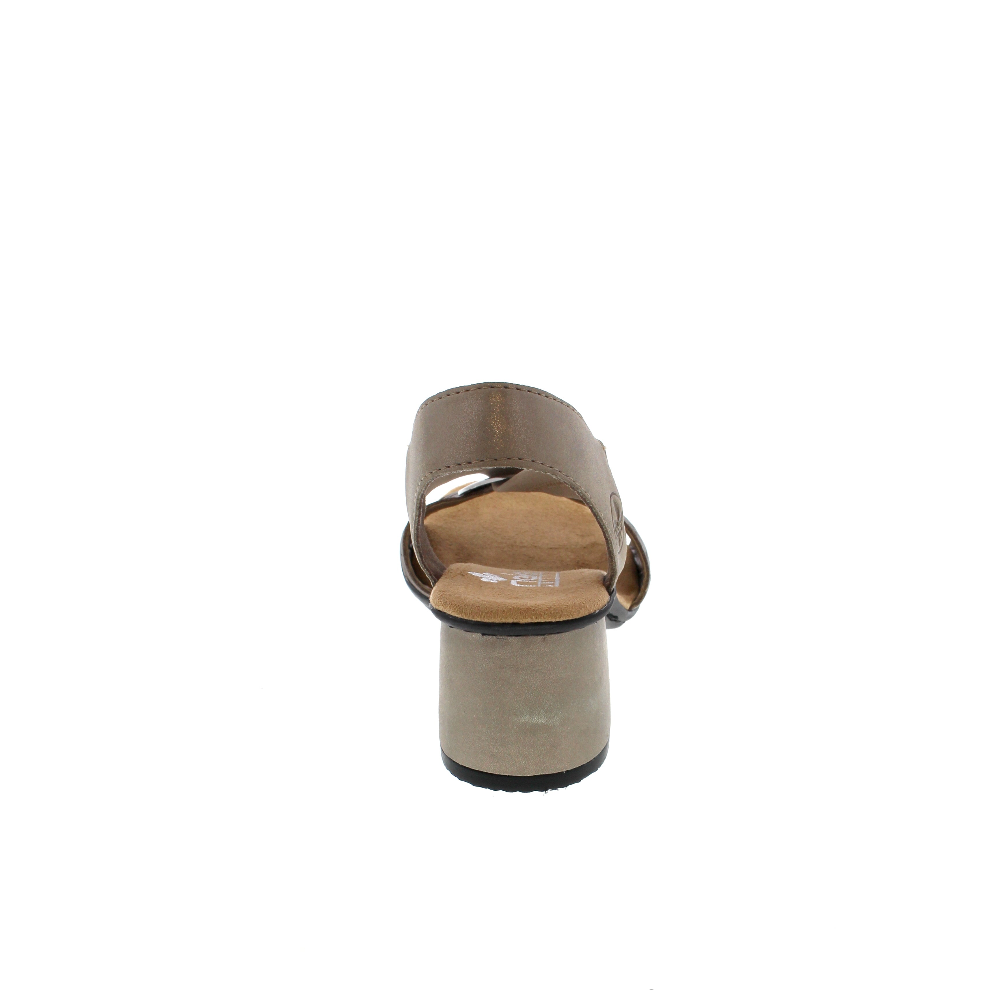 This elegant heel from Rieker shines with its intricate, perforated floral detailing and decorative silver disc. This detailed sandal delivers class and style without sacrificing comfort or support!