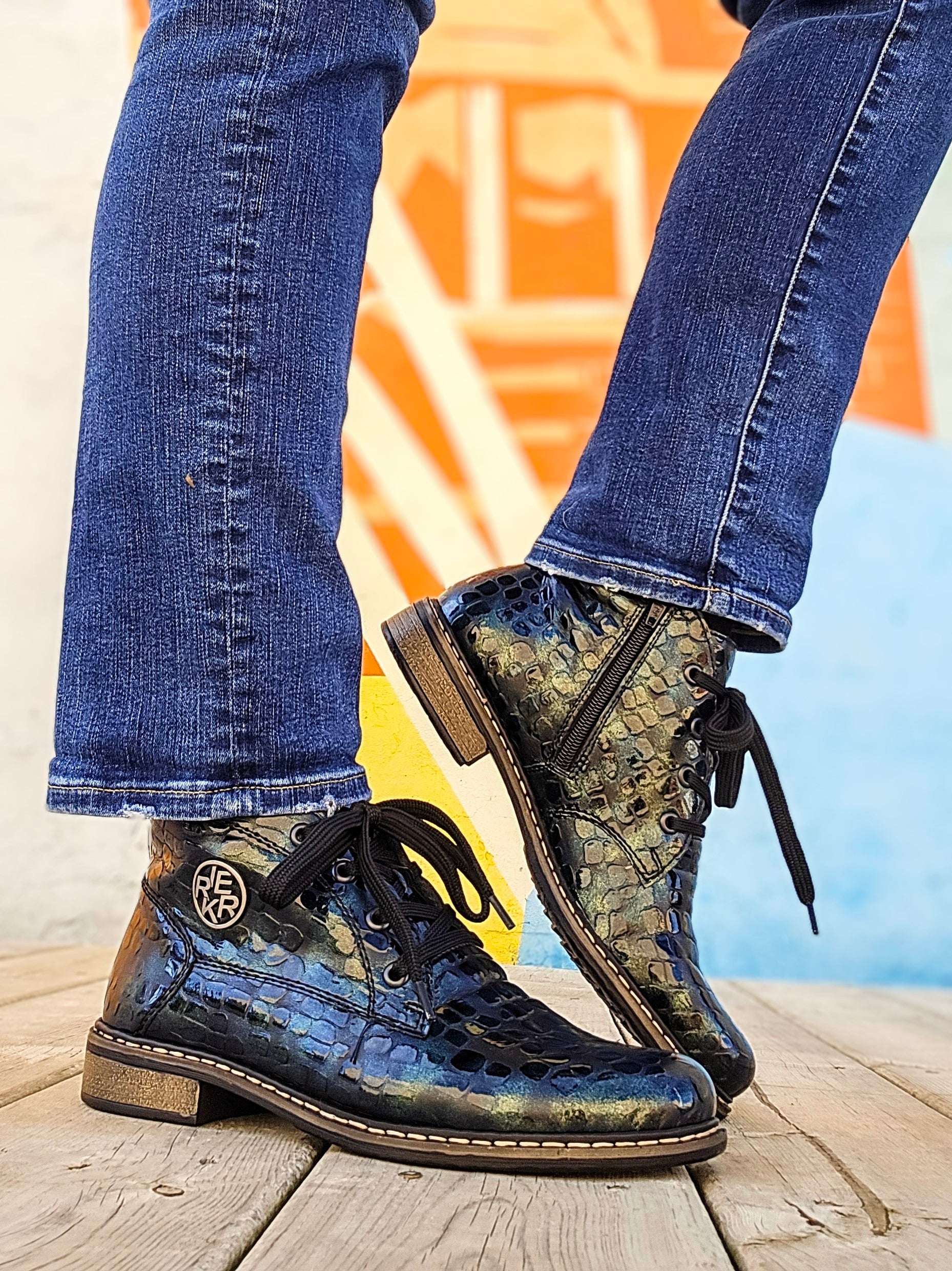 Introducing the Rieker 71205-90, a stylish and sophisticated addition to your wardrobe. Its trendy design and support will elevate any outfit, making it a must-have for fashion lovers. Complement your closet with this unique boot!