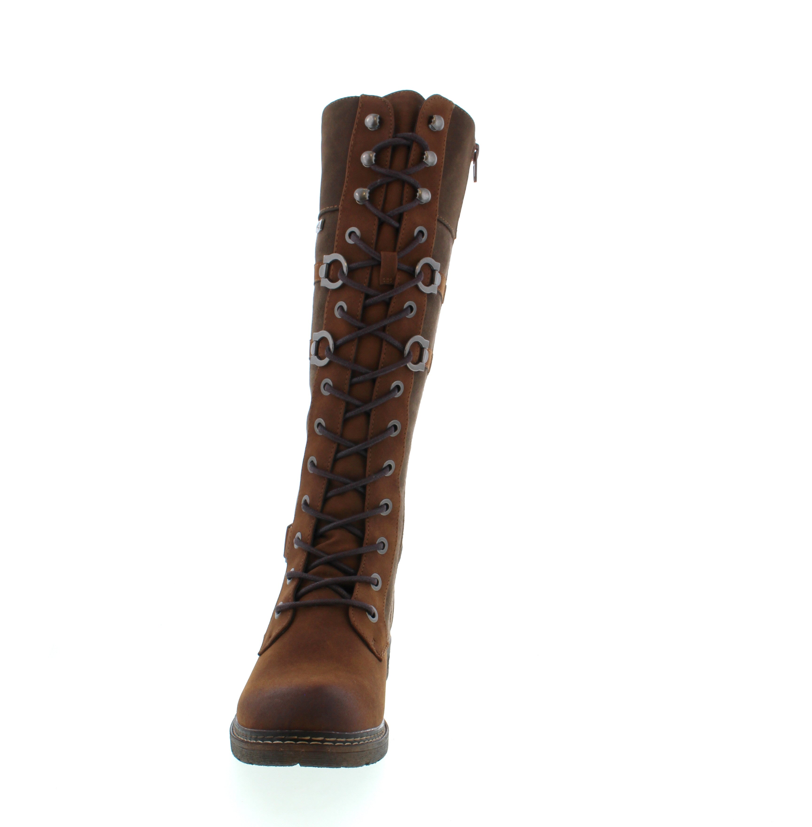 Step out in style and comfort with the Rieker 94732-25 knee-high boots. Featuring a smart blend of lacing and zipper, these boots are easy to slip on and off. Their water-repellent upper shields you from wet and windy weather, while the fluffy warm lining keeps your feet cozy. The grippy sole ensures stability on every surface, making these boots a perfect choice for both fashion and function.