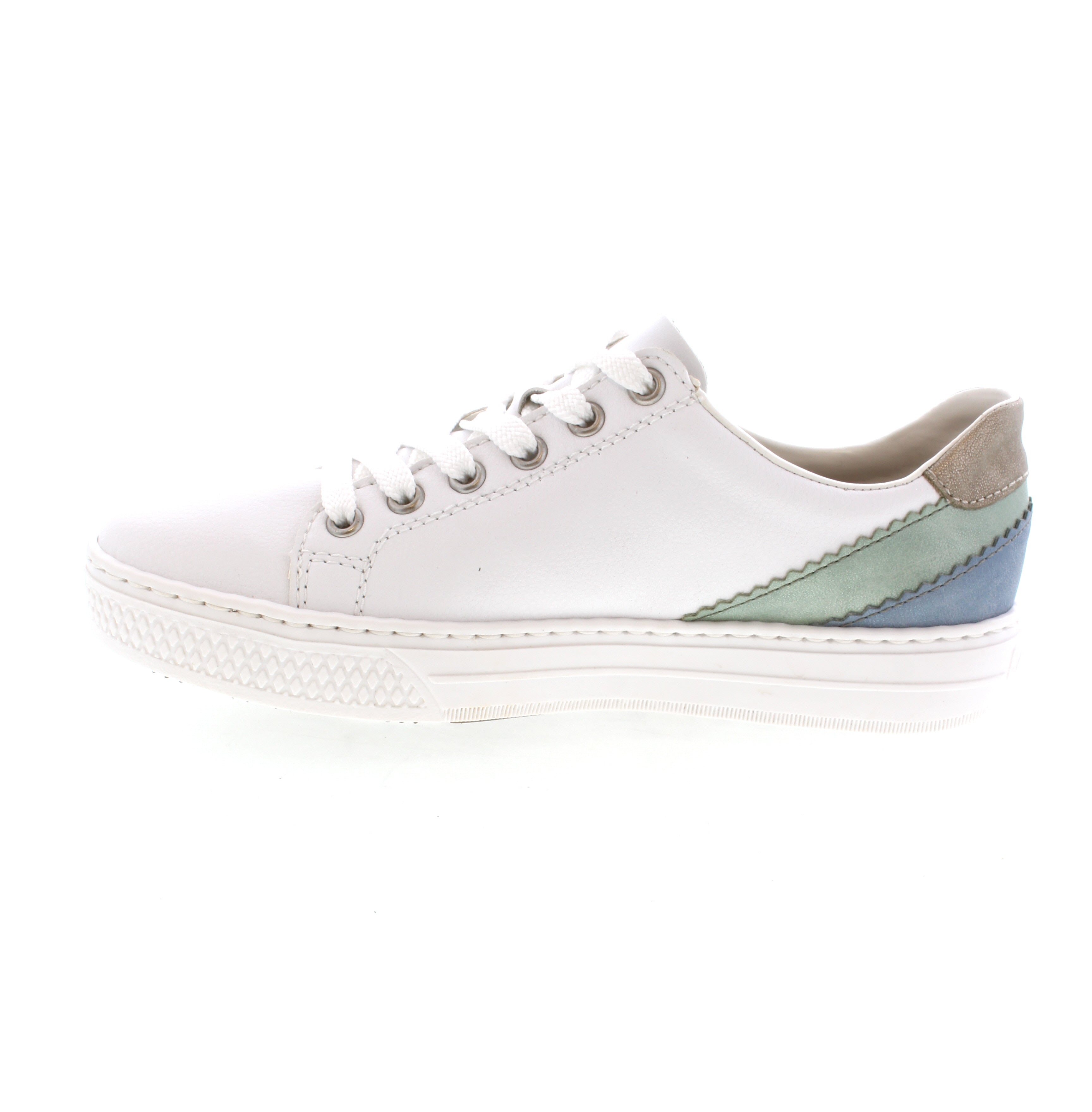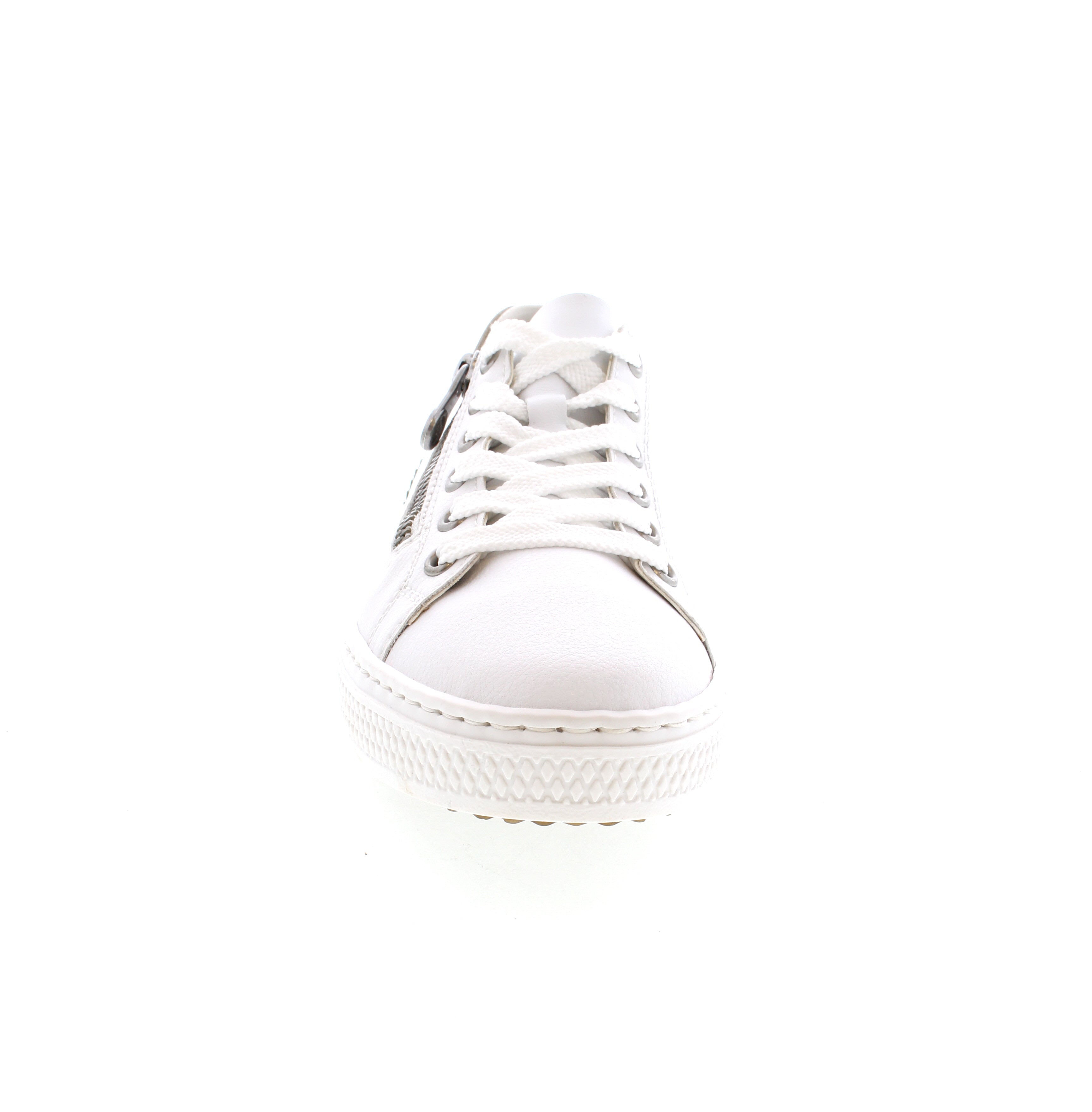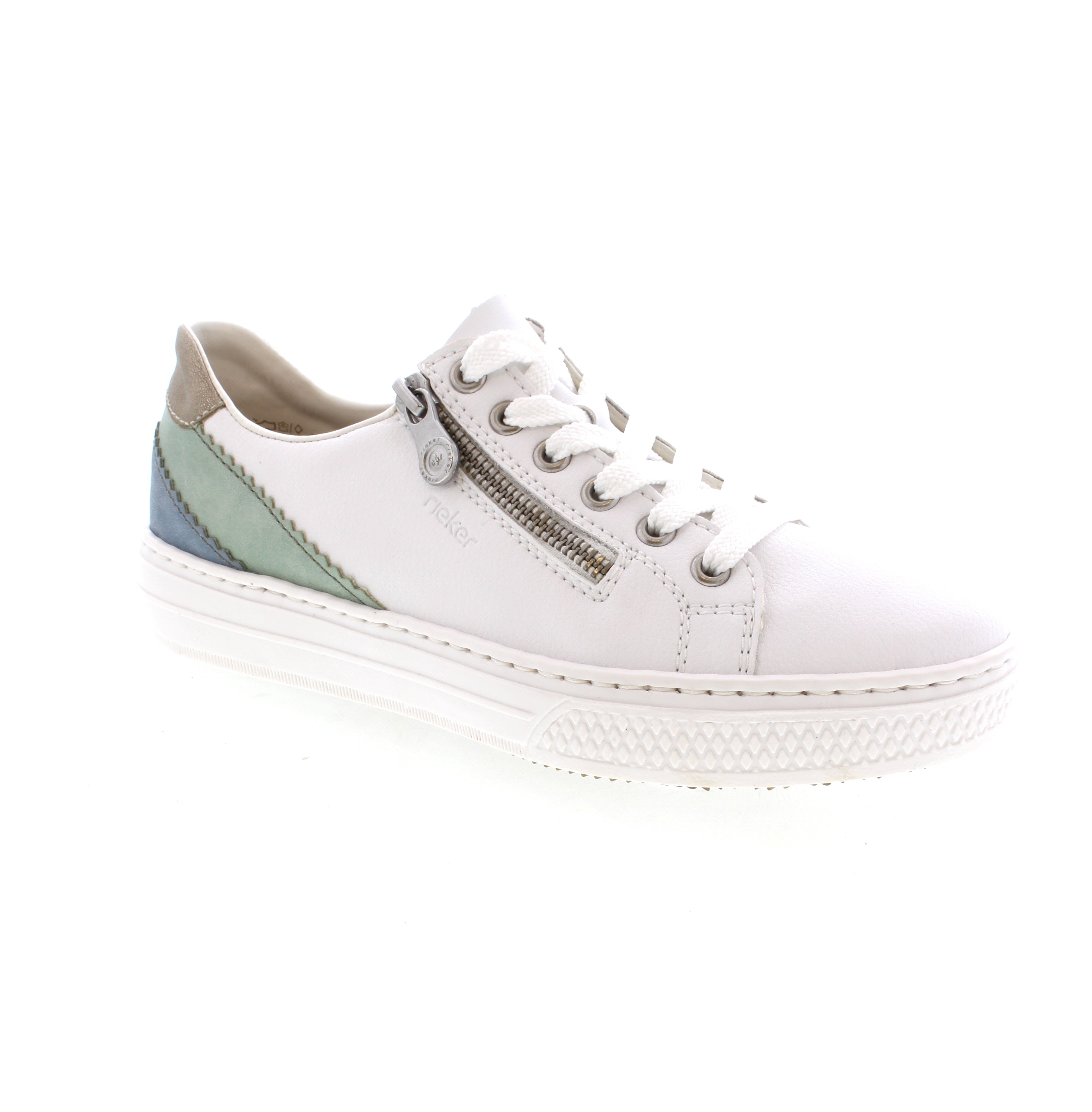 Experience the heavenly comfort of the Rieker L5900-80 low-top sneakers. Made of smooth leather with a traditional stitchdown construction, these shoes offer flexibility and durability. Convenient zipper closure and grippy platform sole provide a snug fit and reliable traction. Enjoy extra cushioning with the MemoSoft cover sole.