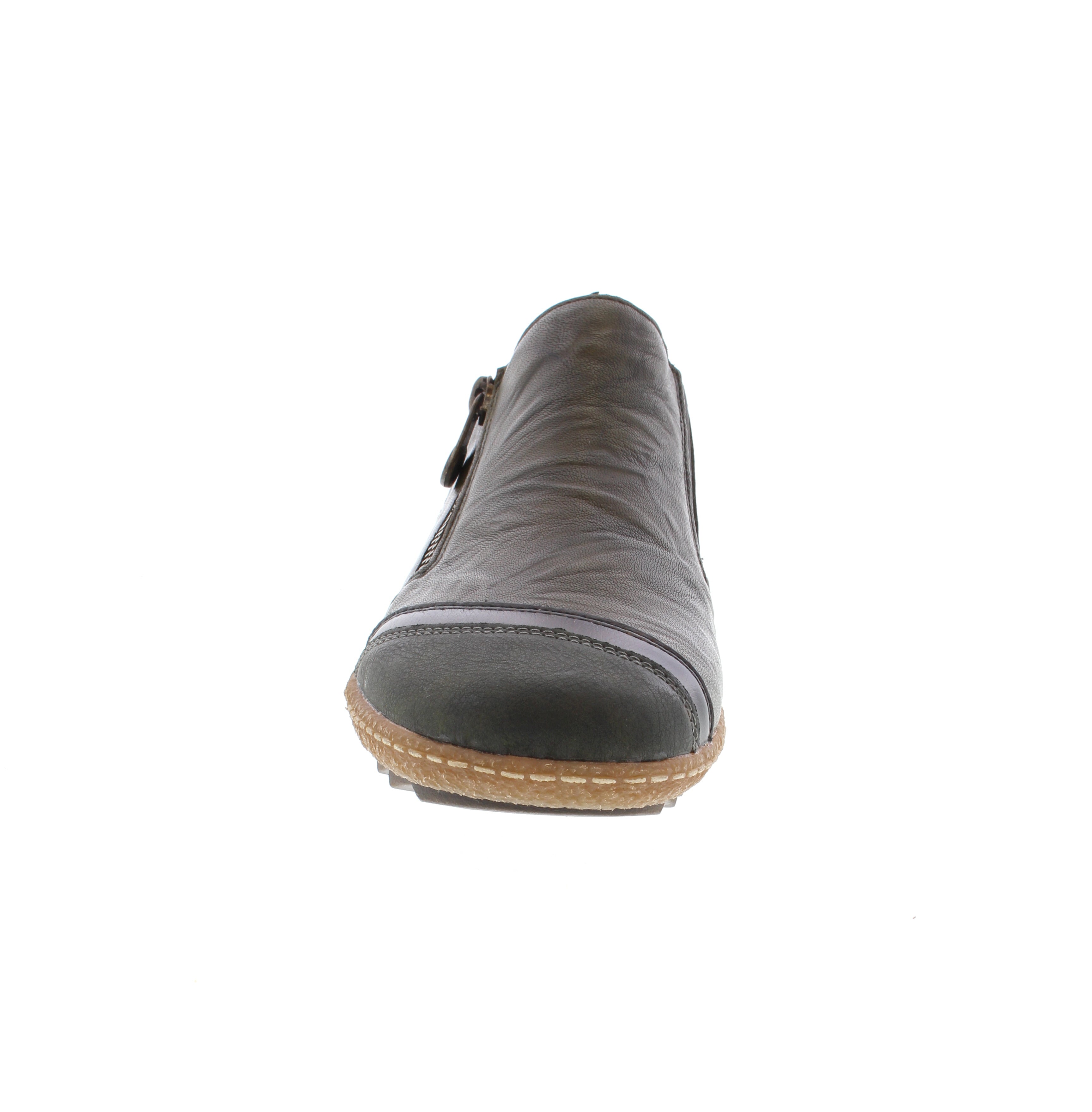 Slip on the Rieker L7571-54 shoes for effortless comfort and practicality. Crafted from smooth leather, these shoes feature a zipper for easy on and off. The grippy sole ensures secure footing with every step, while the removable insole adds customizable comfort and convenience. Perfect for those seeking reliable, stylish footwear.