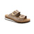 Elevate your casual style with the Rieker V7955-60 beige sandal. This women's everyday sandal features a wedge and cushioned insole for support and comfort. Customize the fit with an adjustable velcro strap and elegant gold buckle. The flexible manmade outsole makes every step a breeze.