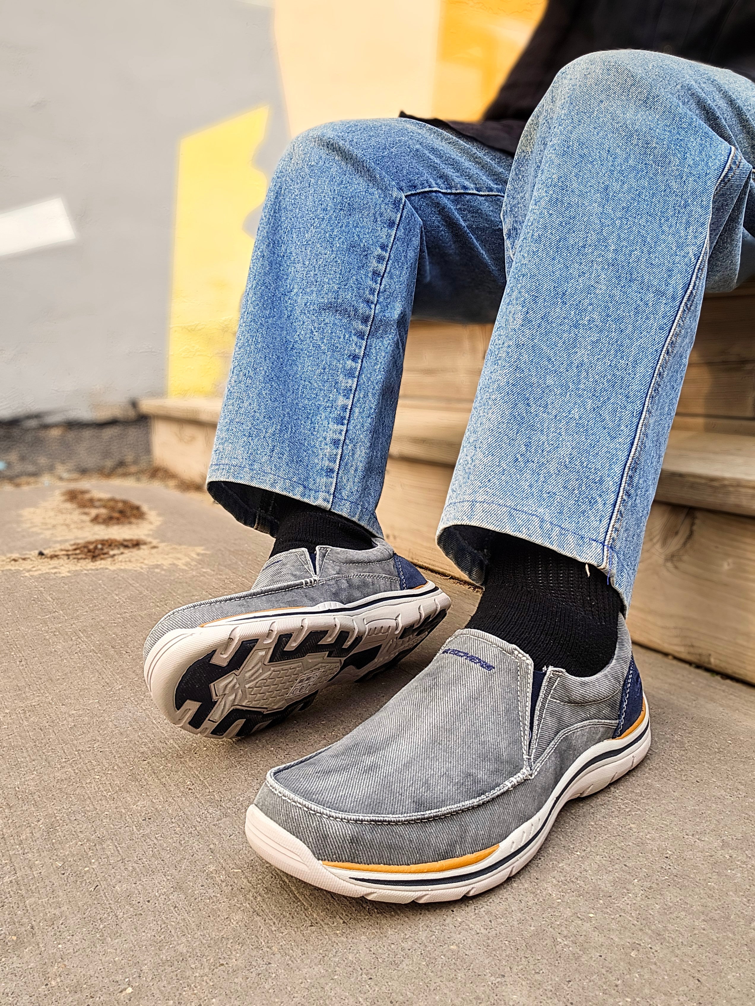 The Expected Avillo slip on, by Skechers, brings comfort to every step! Slip on this shoe for an out-of-the-box, worn-in look that you’ll fall in love with!