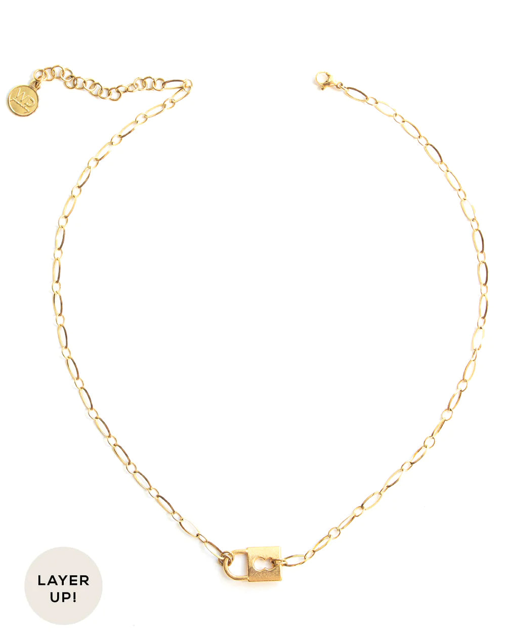 Luck is a unique two-piece gold necklace set that will unlock every opportunity life brings your way. The first necklace is composed of two layers of delicate stainless steel chain with a toggle clasp as a medallion, and the second is adorned with a 24k gold-plated lock for a stylish look.